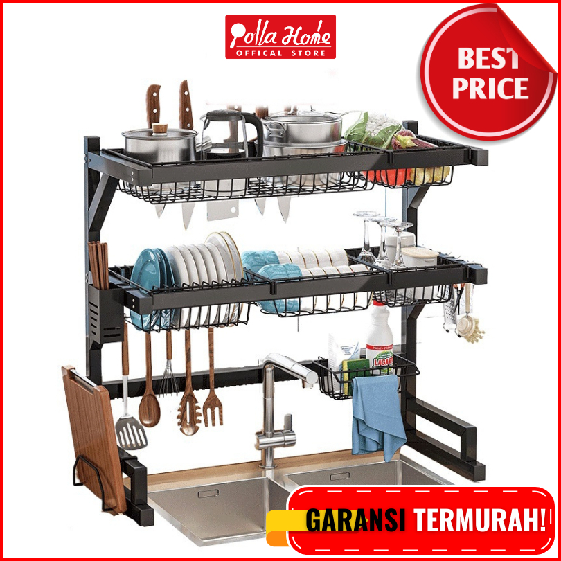 Ollahom Rak Dapur Hitam Rak Wastafel Rak Piring Dan Peralatan Dapur 65 Cm Dan 125 Cm