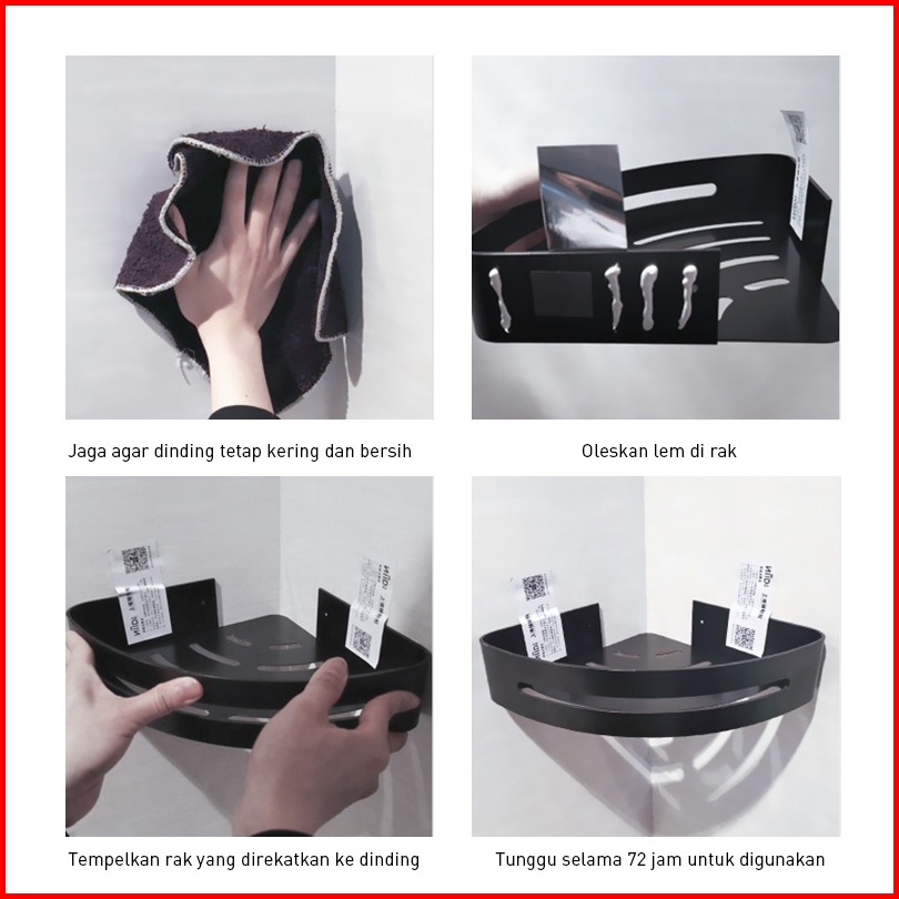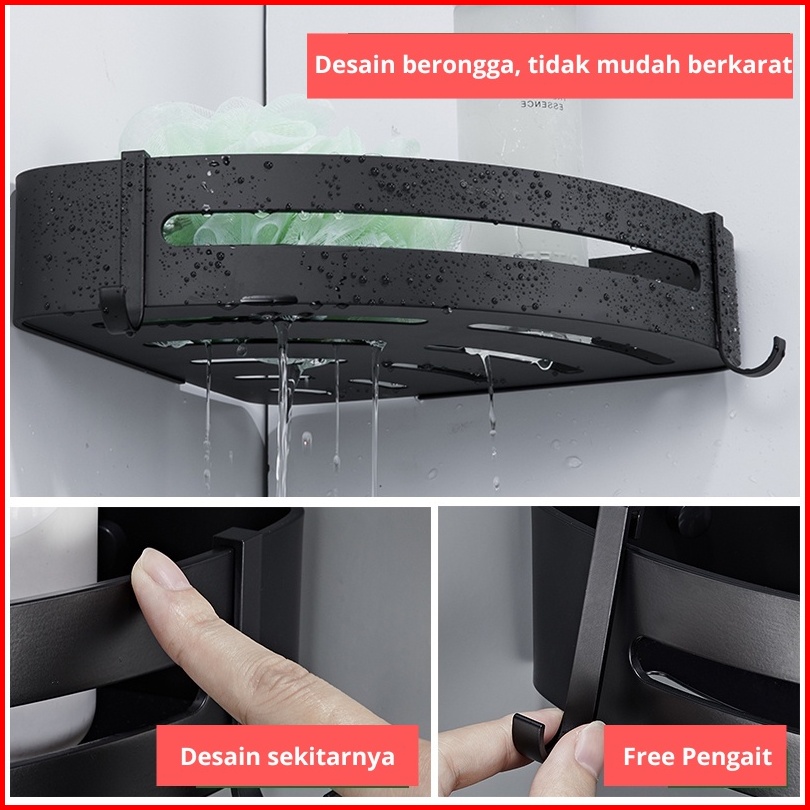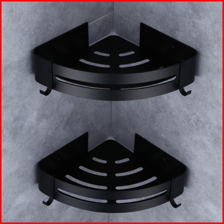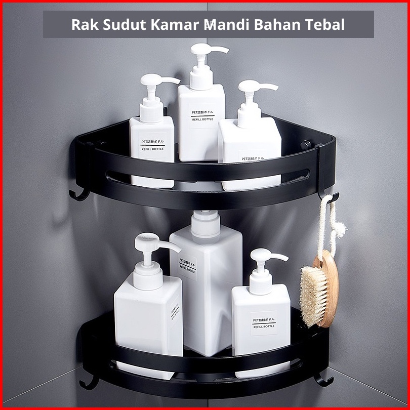 Ollahom Rak Sudut Kamar Mandi Warna Hitam 2 Susun Tempat Sabun Dan Shampo Mandi