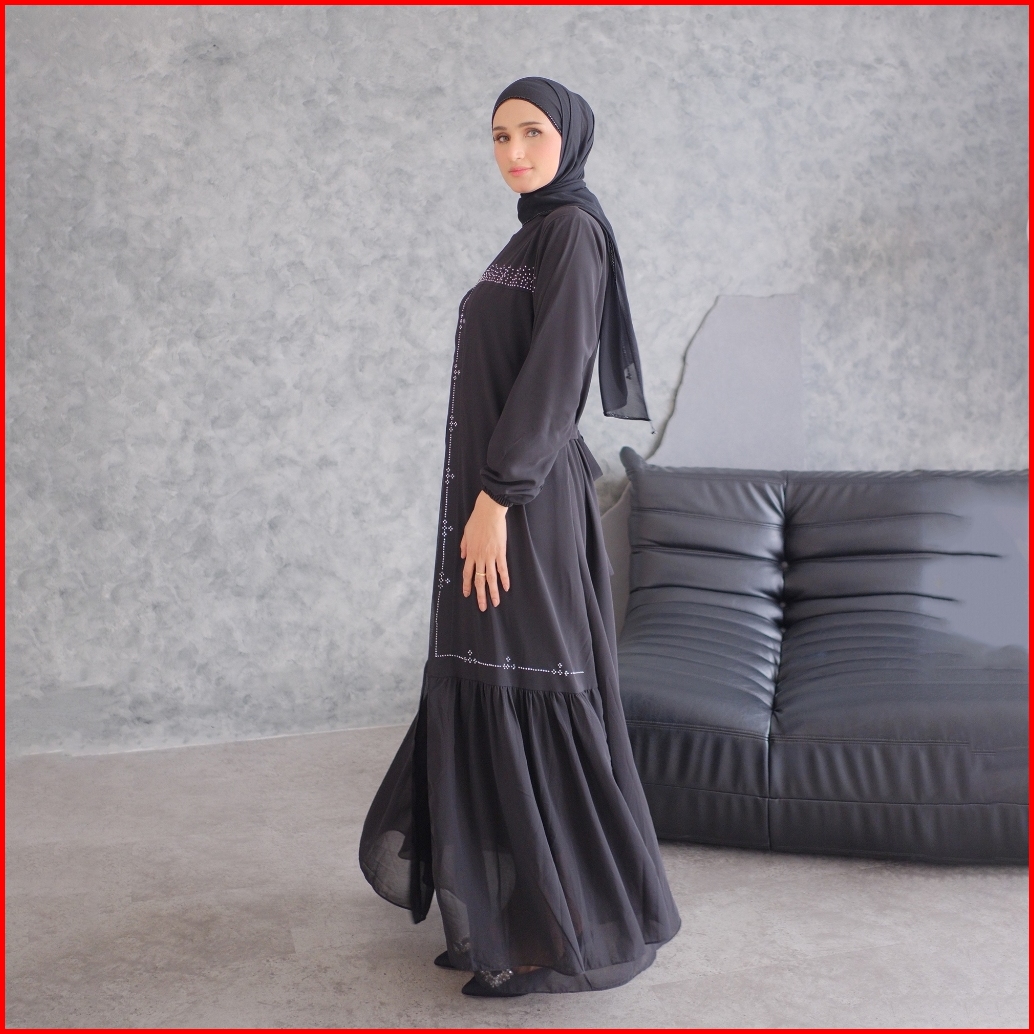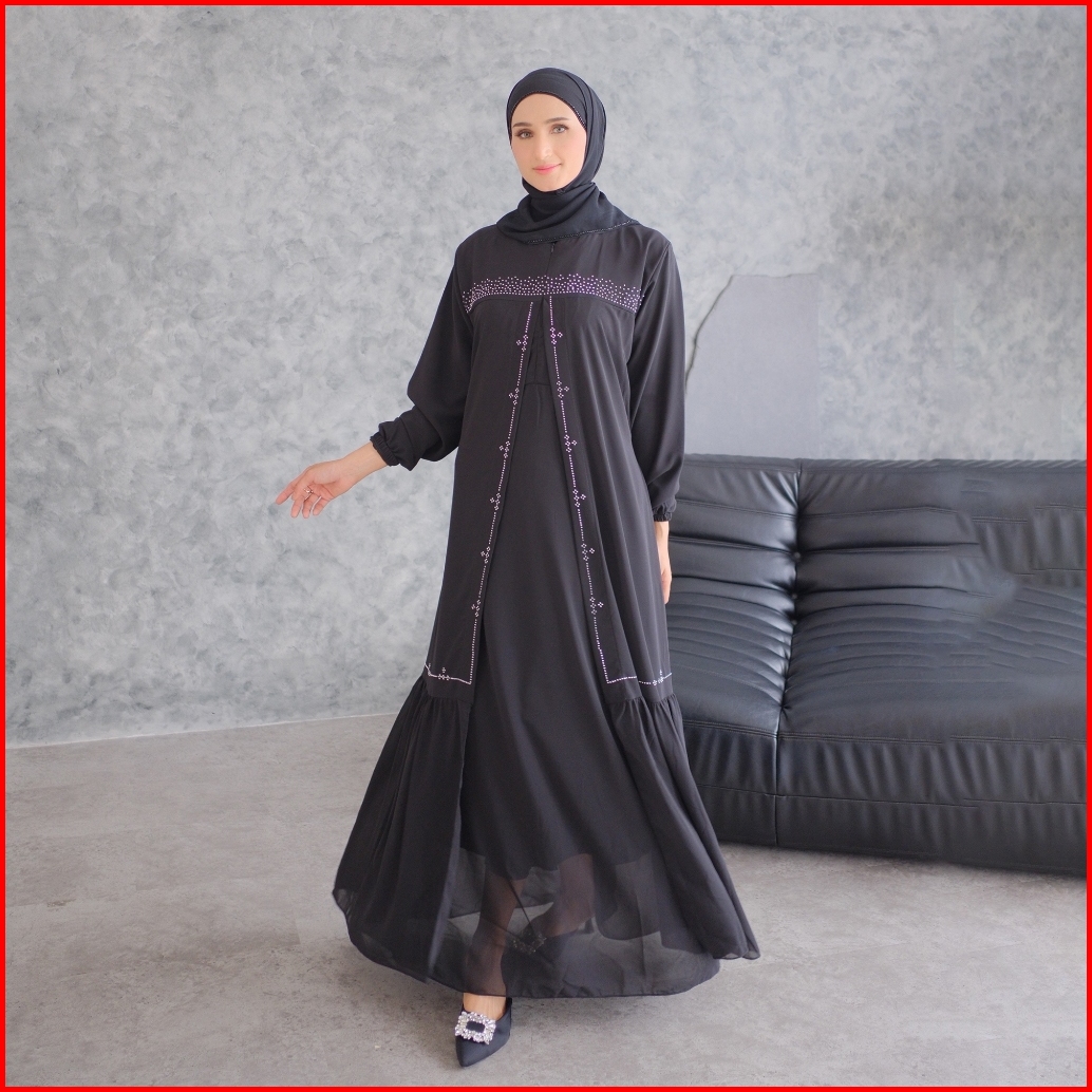 Amie Shop Jaskiya Dress Baju Gamis Bahan Ceruty Babydoll Mix Swaroski Ld 110 Dan Ld 120