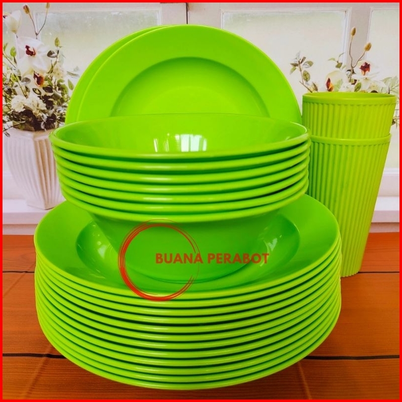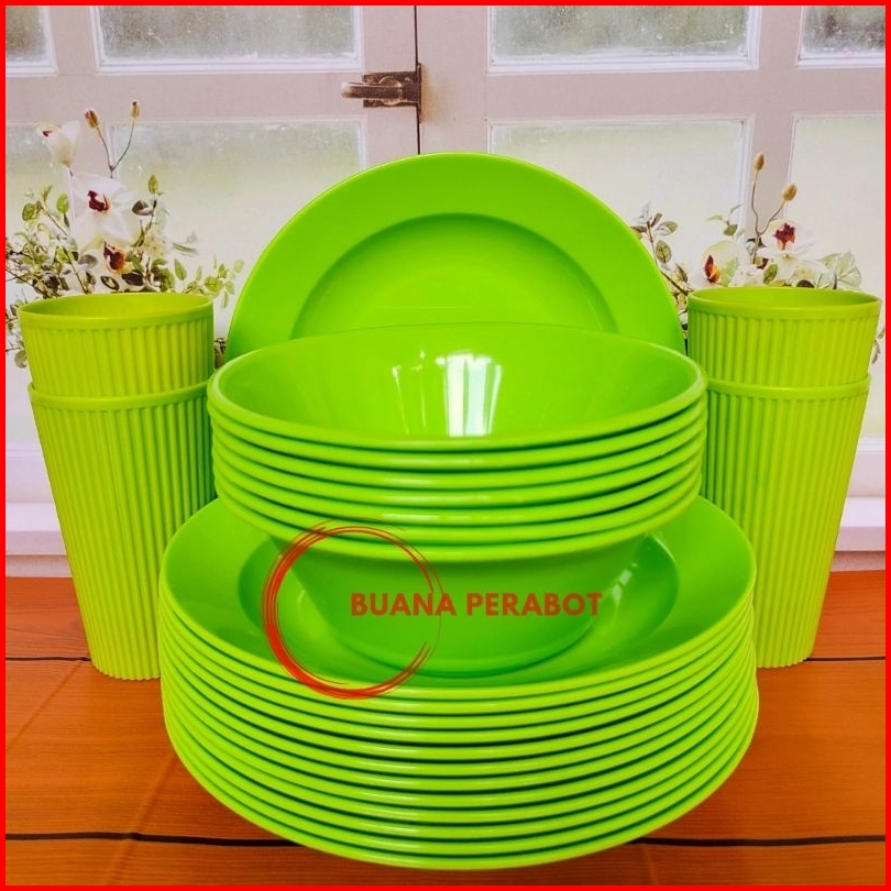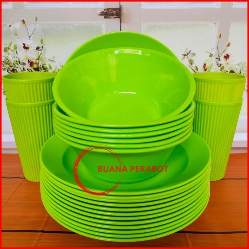 Paket Isi 12 Pcs Piring Campur Mangkuk Dan Gelas Plastik Tebal Food Grade Tahan Panas