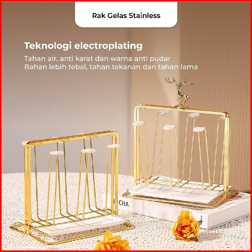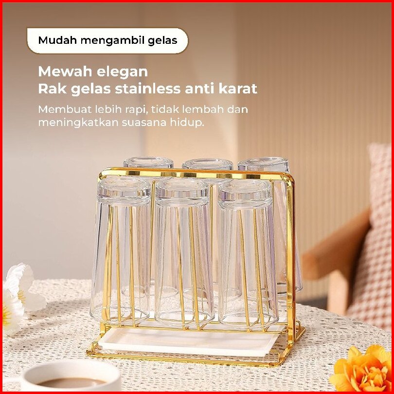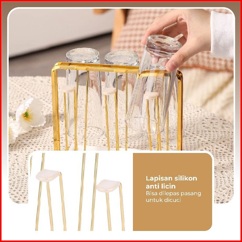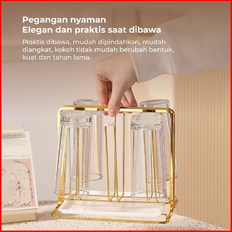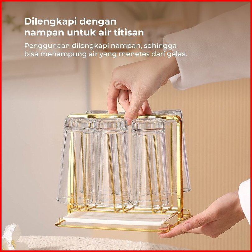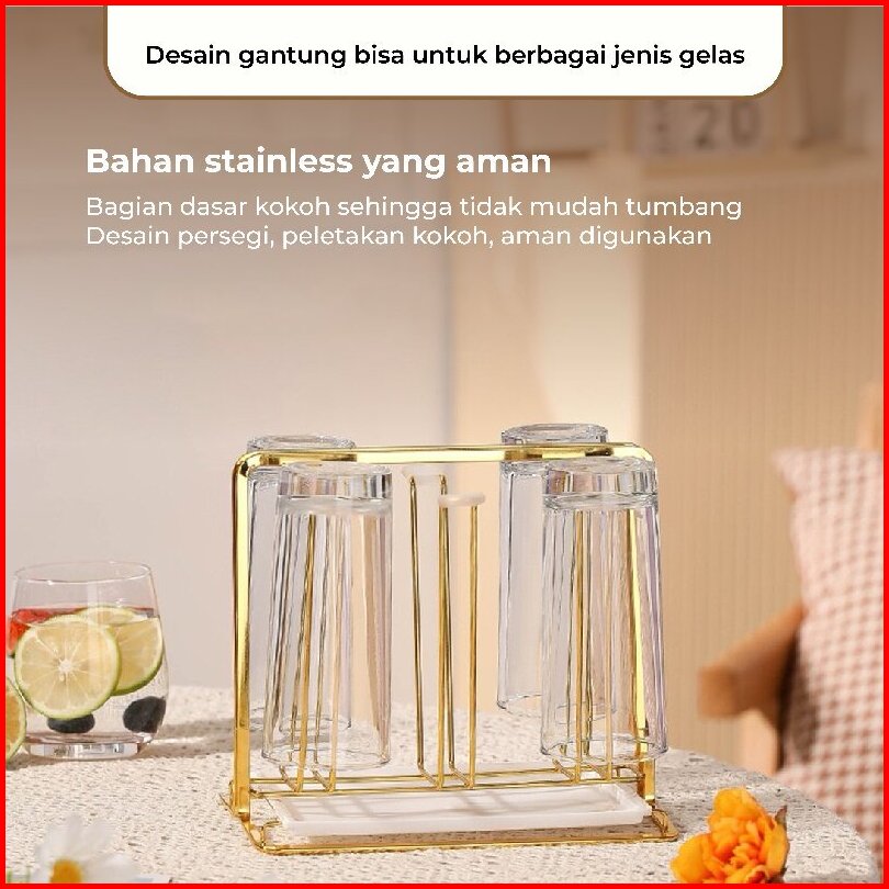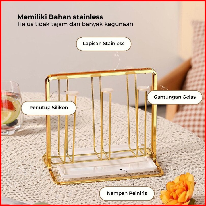 Rt Home Gantung Rak Cangkir Stainless Steel Minimalis Rak Gelas Cup Holder Tiriskan Tempat Gelas Organizer Besi Anti Kar