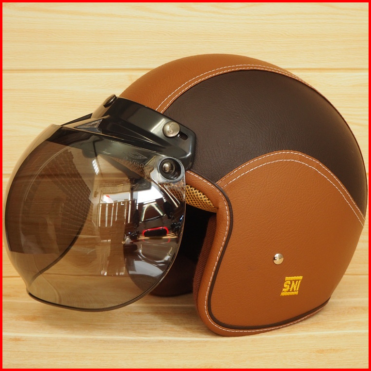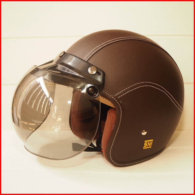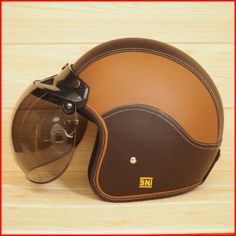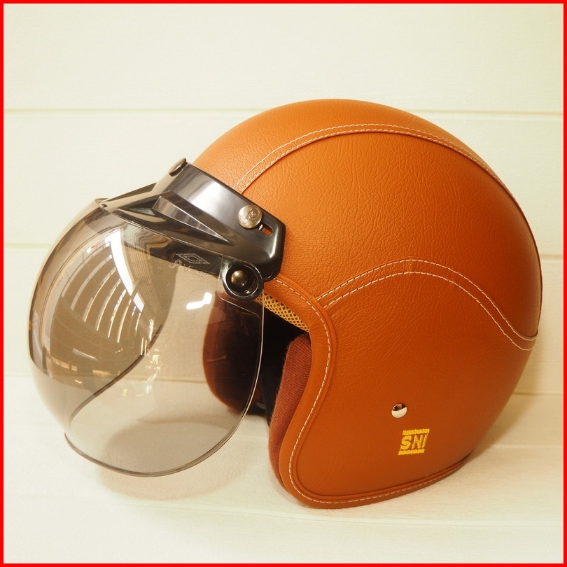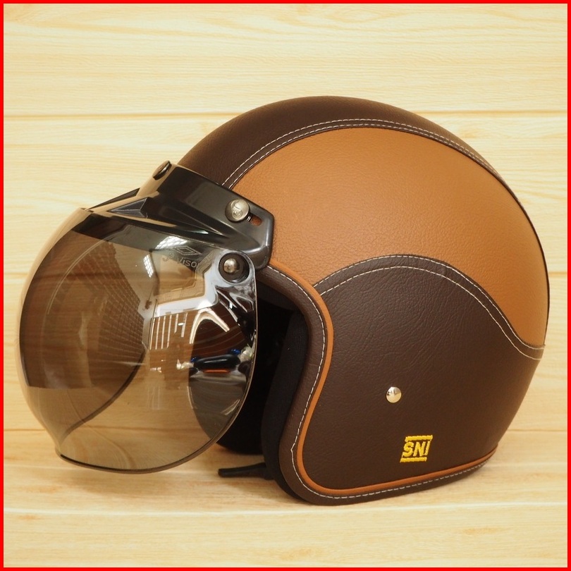 Bogo Helm Boggo Classic Glossy Sni Dewasa Pria Dan Wanita Helmet Retro Klasik Leather Sintetis Kaca Datar Cembung Warna