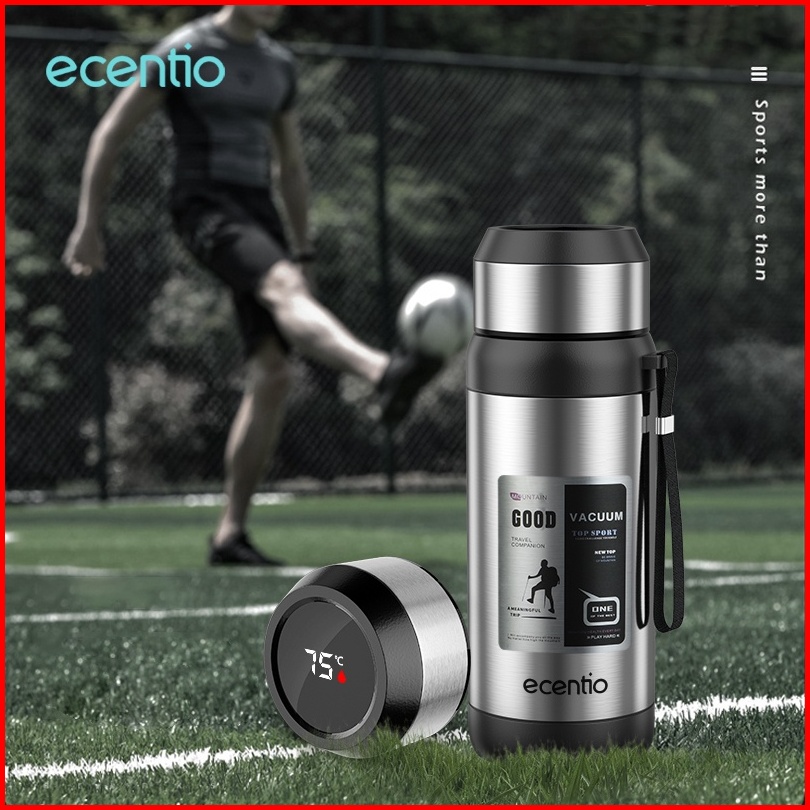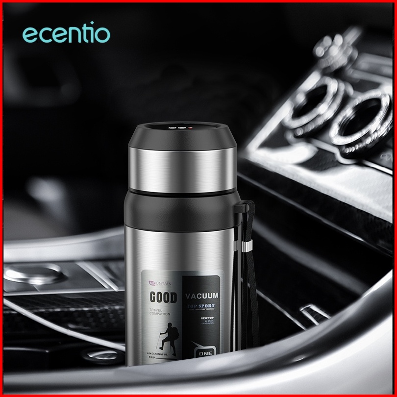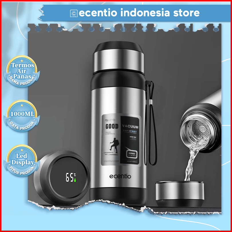 Ecentio Thermos 1 Liter Silver Kapasitas Besar 1000ml Termos Air Panas Led Display Botol Minum Stainless Steel 304 Outdo