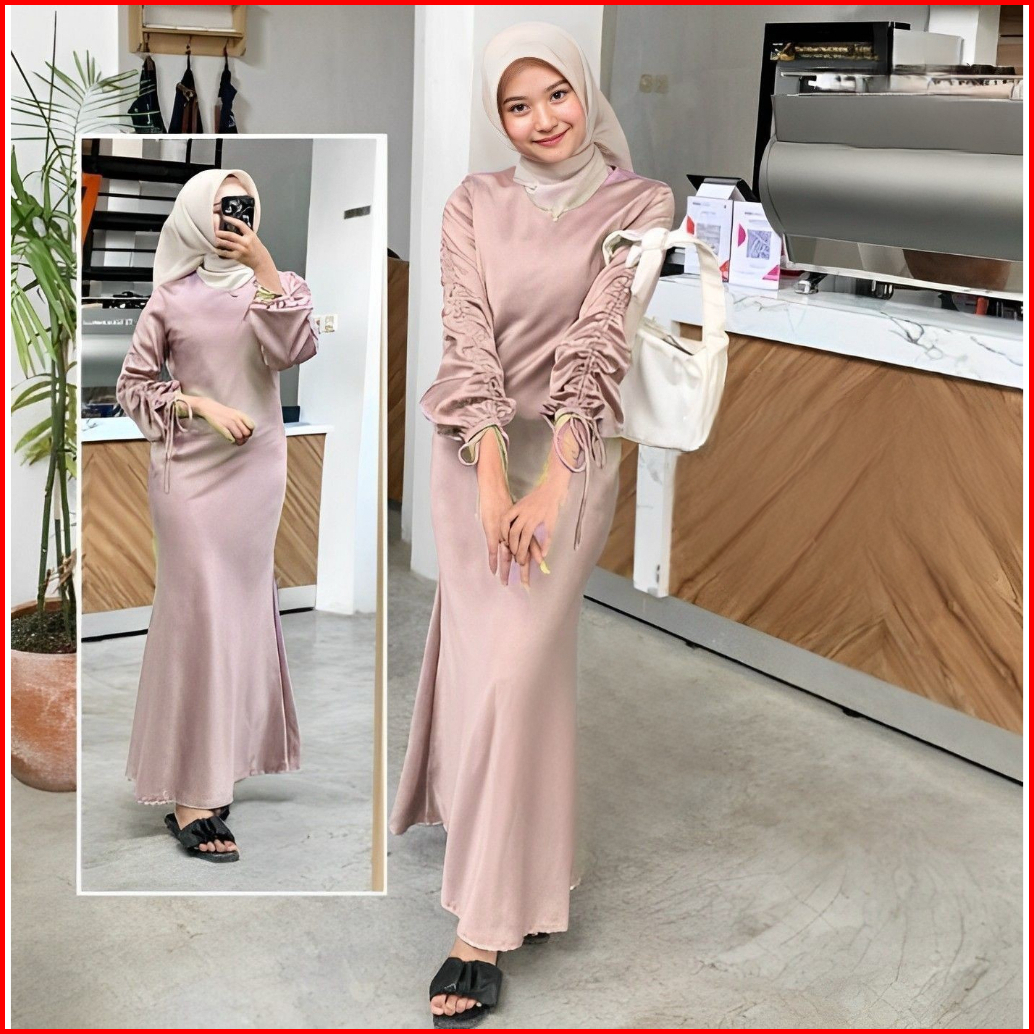 Dress Darla Silk Satin Serut Long Dress Satin Serut Dress