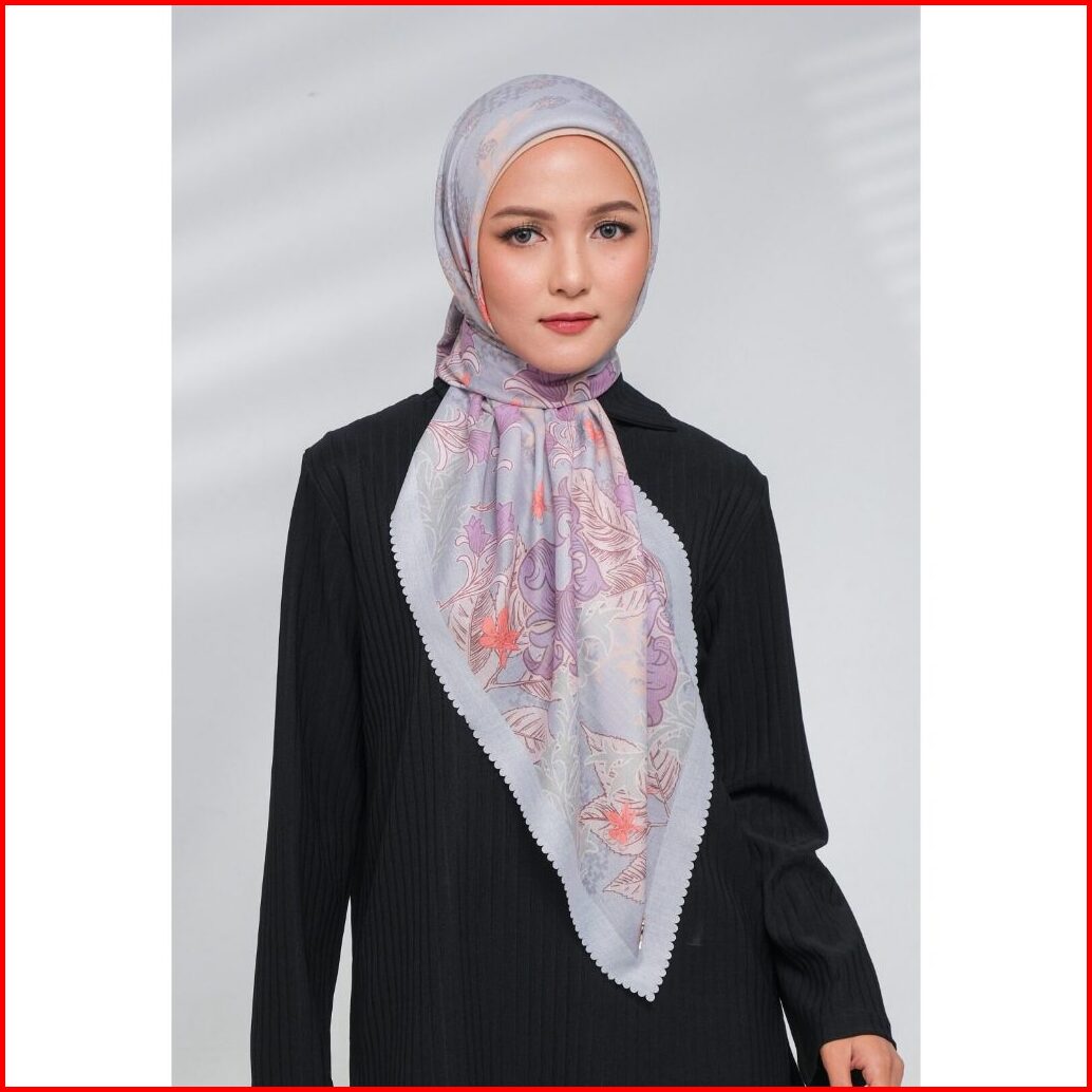 Zoya Tazaqa Scarf - Kerudung Hijab Segiempat Motif With Box - Bahan Voal Ukuran 115x115
