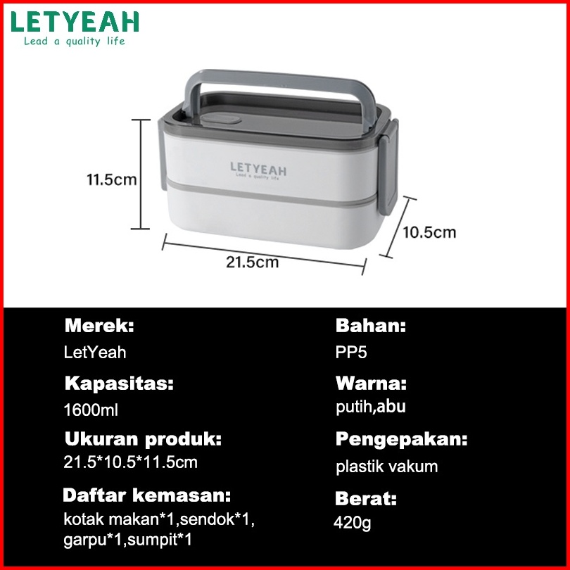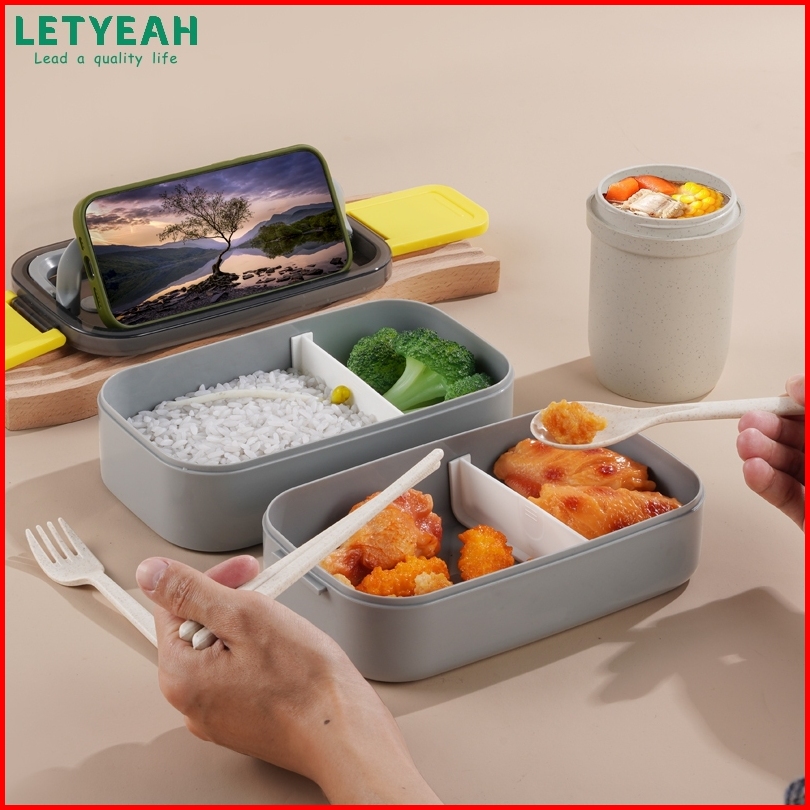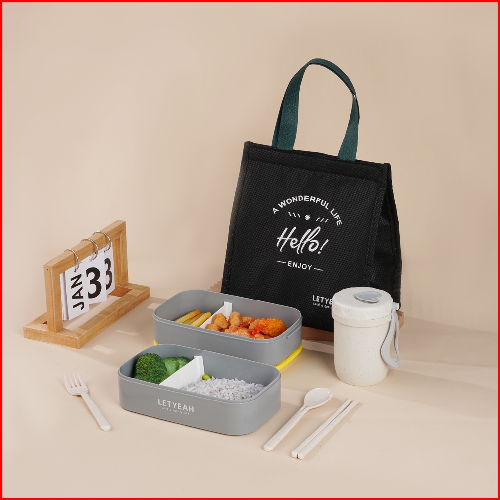 Letyeah Kaizenliving Tempat Makan Set Tas Diy Stiker Double-layers Lunch Box Set Tas Bekal Lucu 1600ml Anti Tumpah Soup
