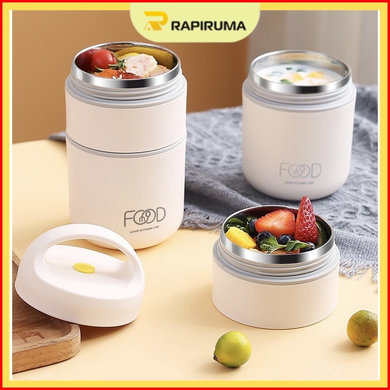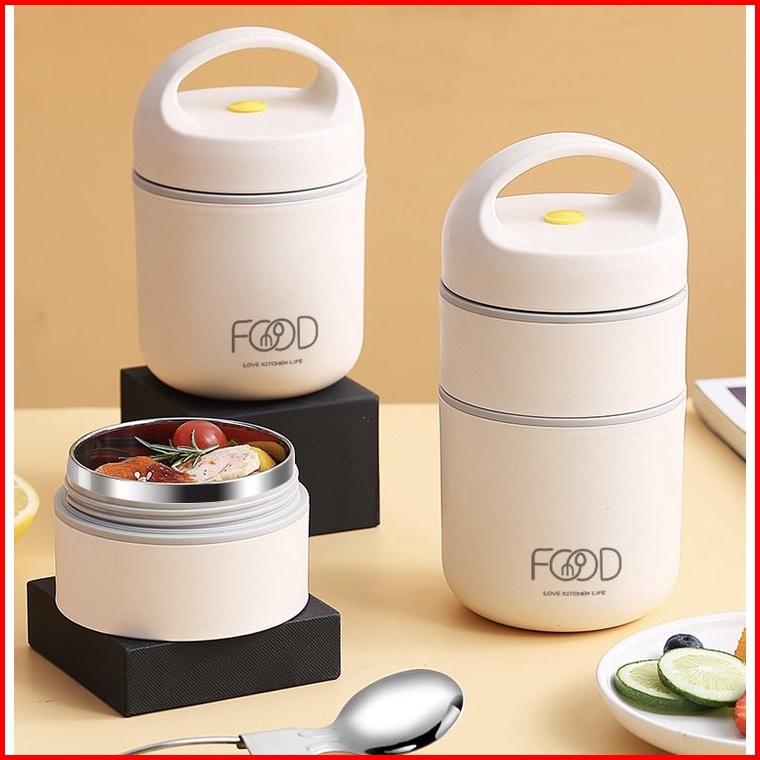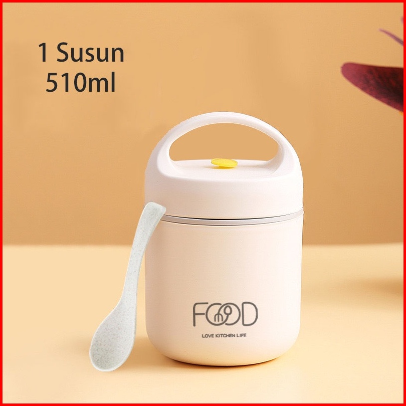 Kotak Bekal Stainless 2 Tingkat Lunch Box Isolasi Vacuum Stainless Steel 304 Cangkir Sup Dengan Sendok Stainless Kotak M
