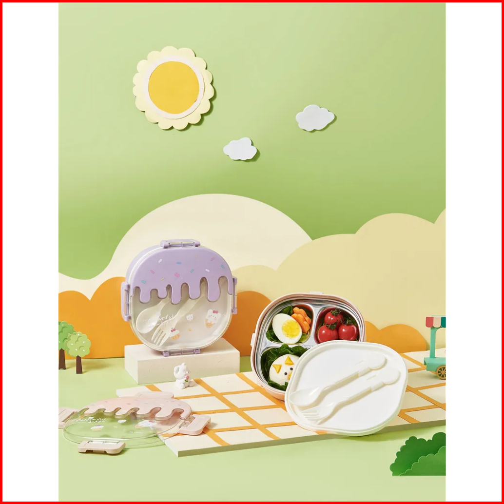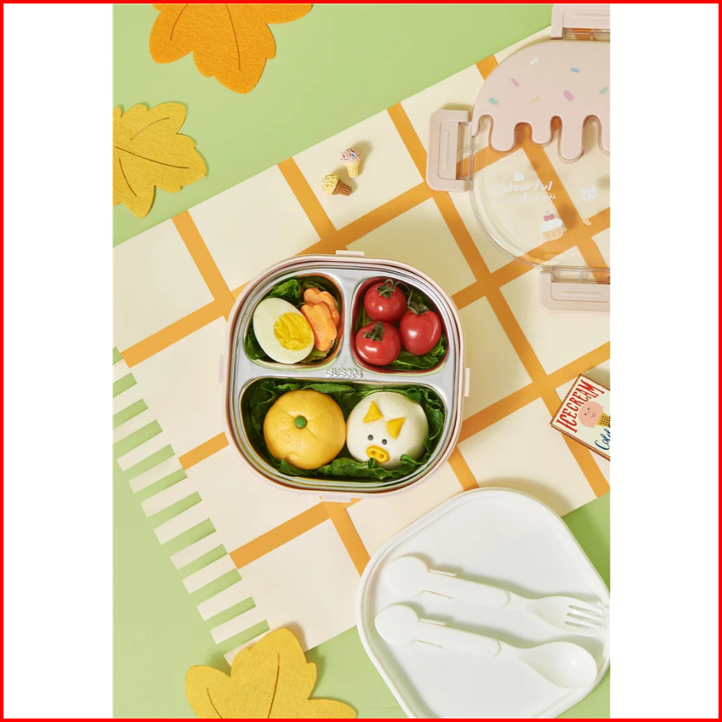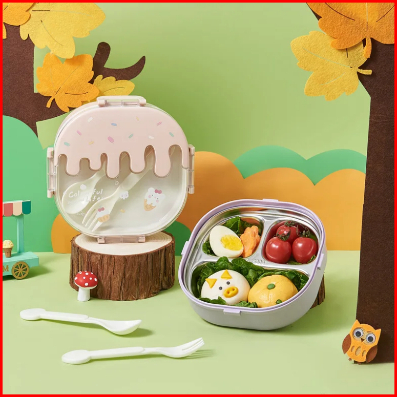 Kotak Bekal Lunch Box Tempat Makan Stainless Steel Bonus Sendok Garpu Lb24