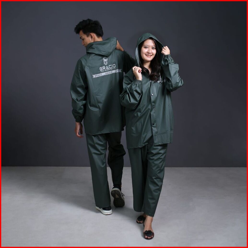 Raincoat Jas Hujan Dewasa Terbaik Pria Wanita By Gracio Mantel Hijau Army