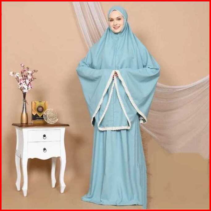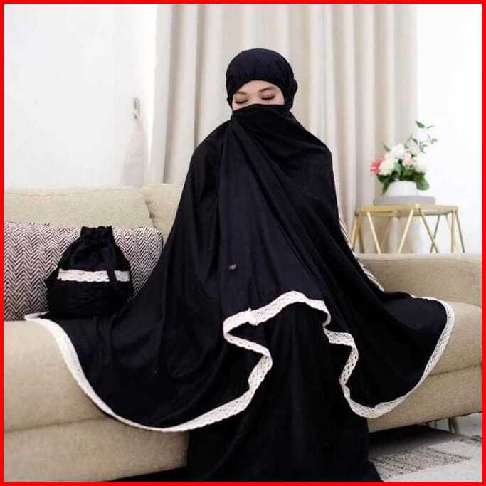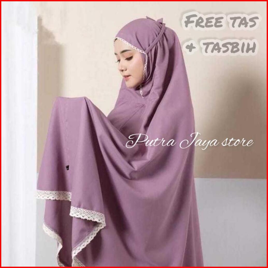 Mukena Dewasa Katun Polos Renda Rajut Premium Traveling Free Tas Tasbe Bahan Adem
