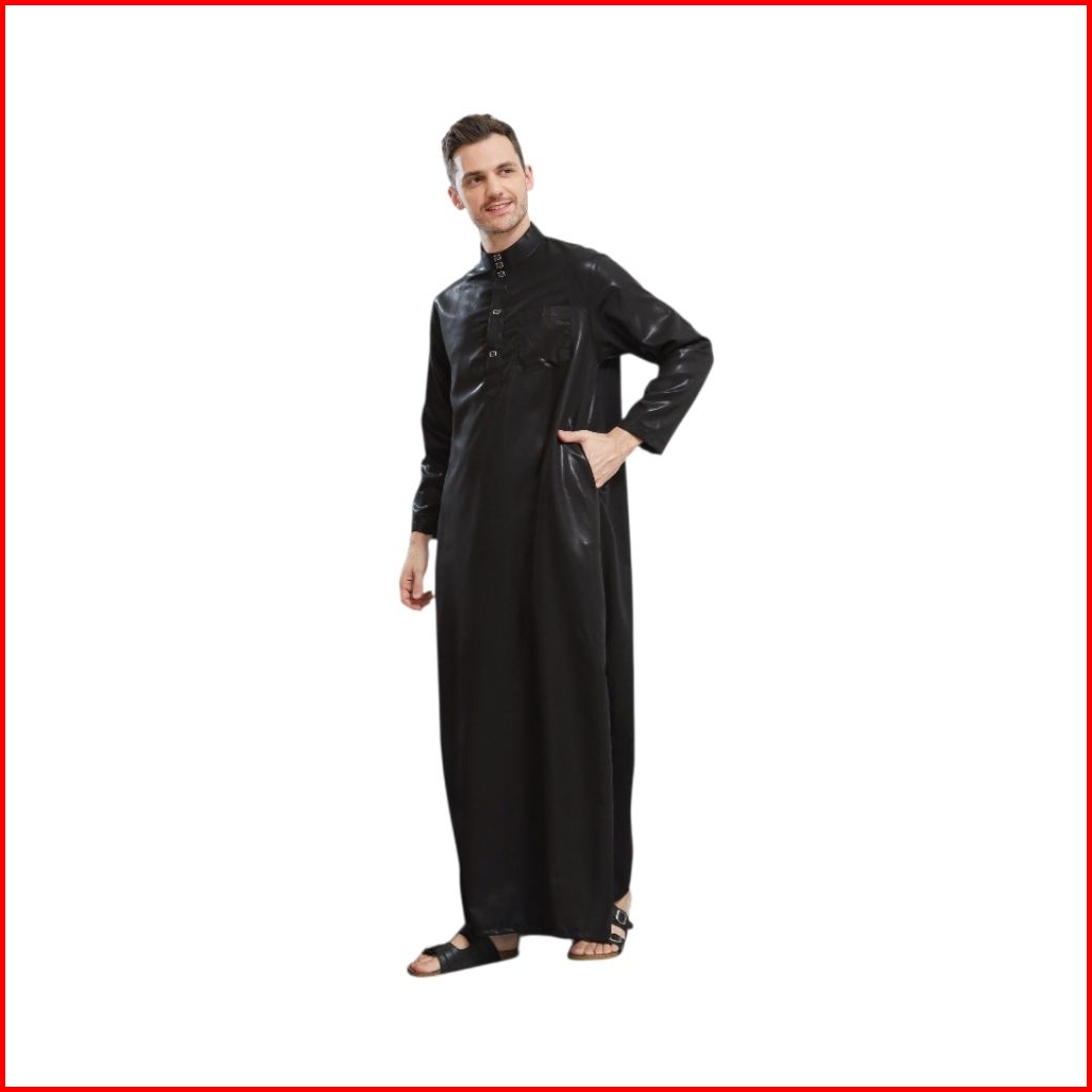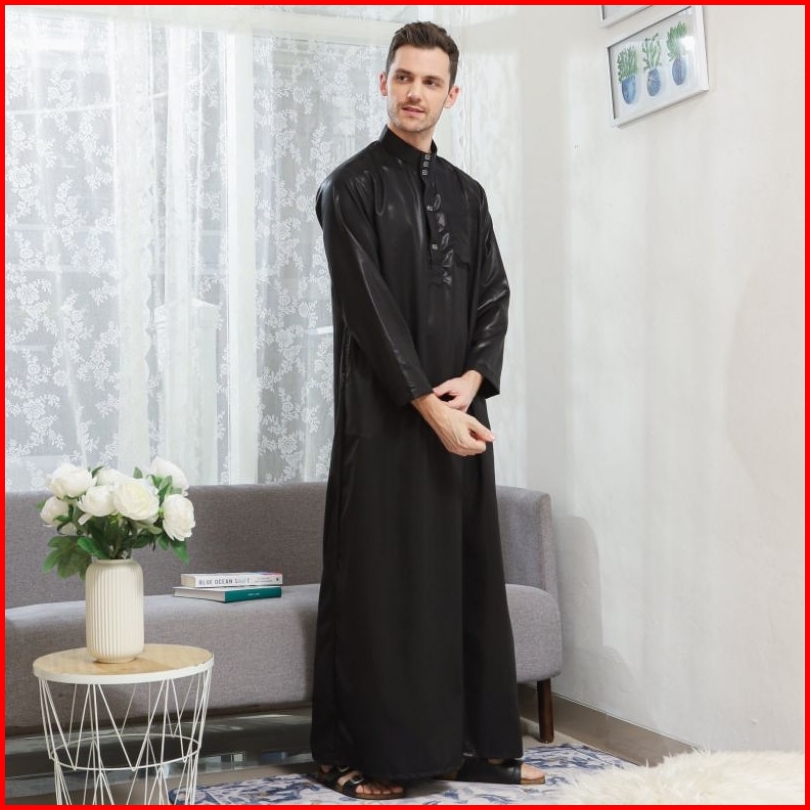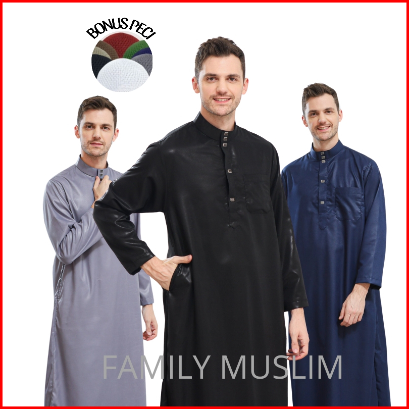 Family Muslim - Jubah Gamis Pria Dewasa Lengan Panjang Slimfit Dubai Hiitam