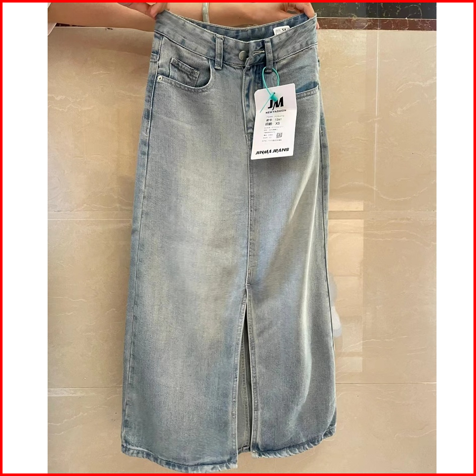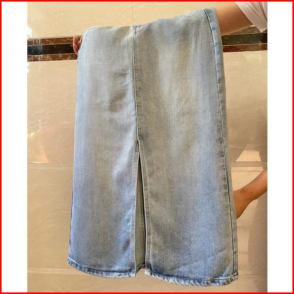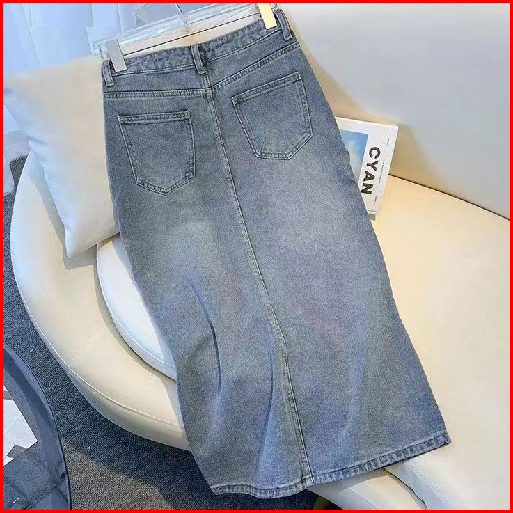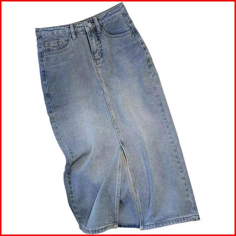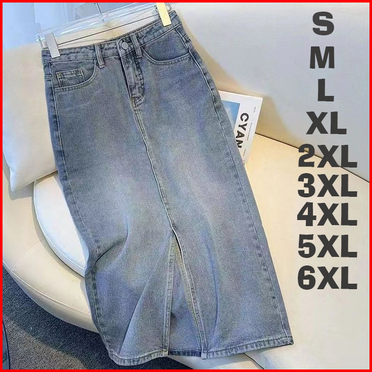 Boll.idbigsize Jumbo Rok Jeans Panjang Rok Span Korean Style Wanita Jumbo S-6xl Rok Jeans Span 7 8 Highwaist Biru Retro