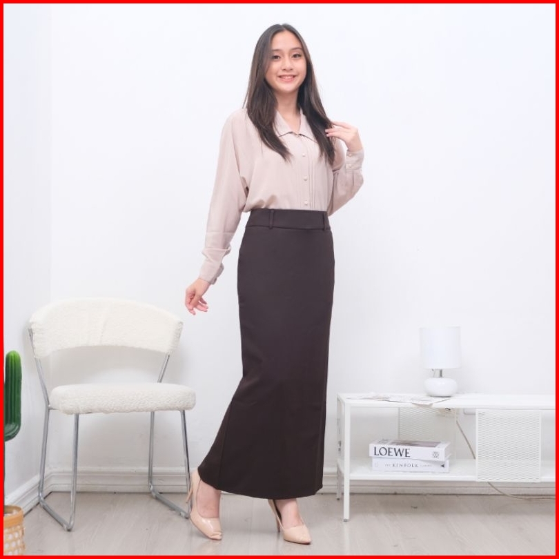 Rok Span Kerja Wanita Bahan Kantor Formal Wanita Rempel Bawah Biron S.m.l.xl