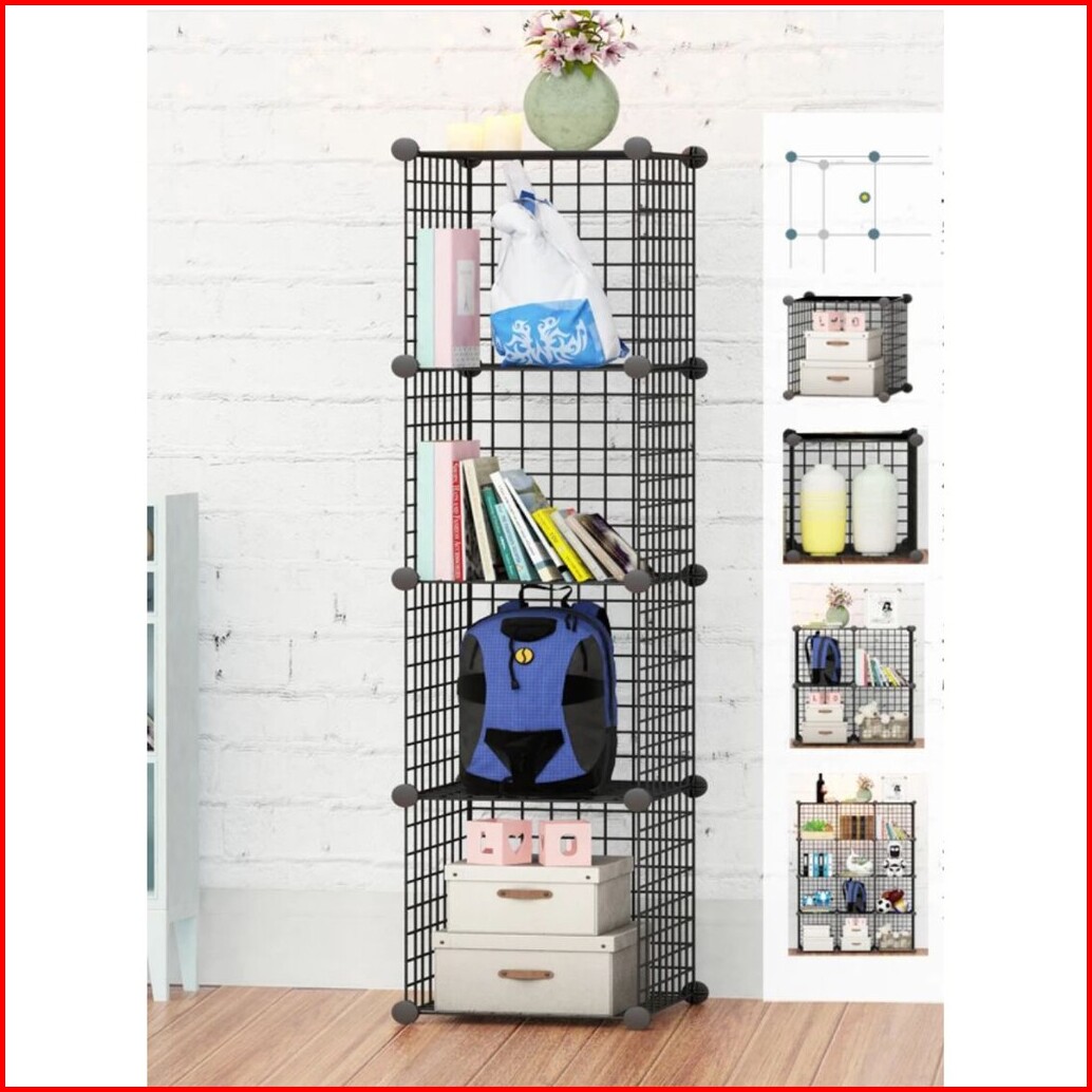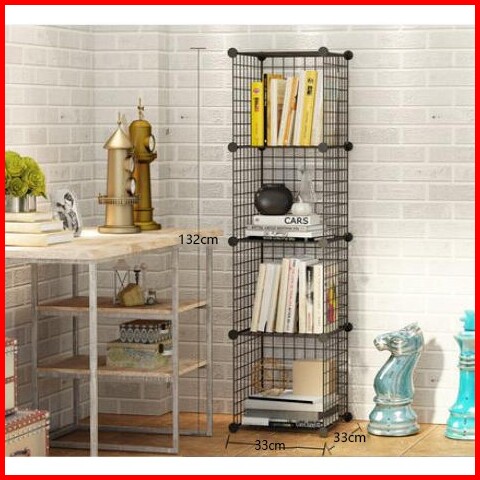 Rak Buku Rak Besi Rak Serbaguna Rak Toys Storage Box Lemari Susun 4 Kotak