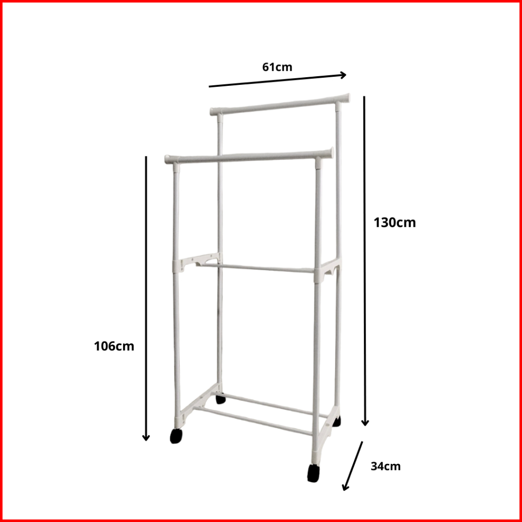 Double Rod Rack Rak Baju Pipa Besar Serbaguna Gantungan Laundry Pajangan Display Stand Hanger