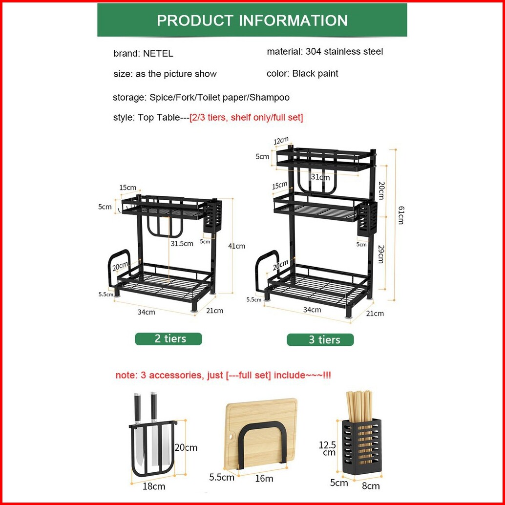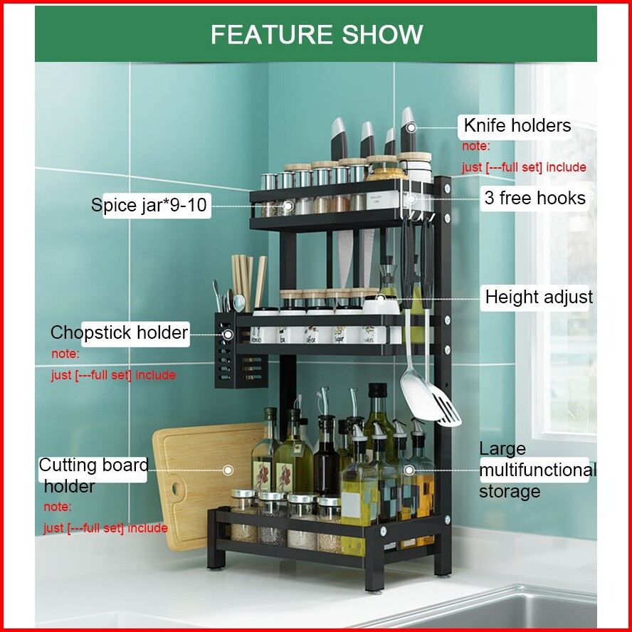 Rak Bumbu Dapur Penyimpanan Bumbu Penyelenggara Rak Susun Stainless Steel 2 3 Tier Rak Botol Rempah-rempah