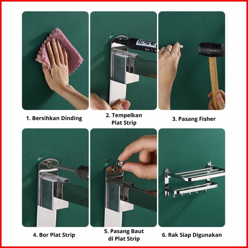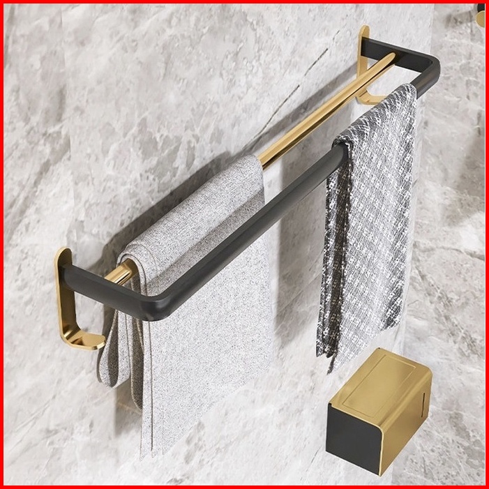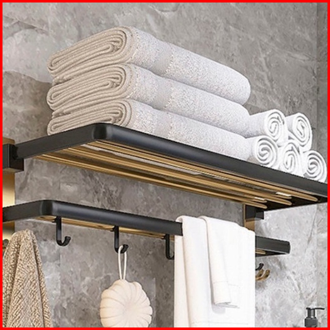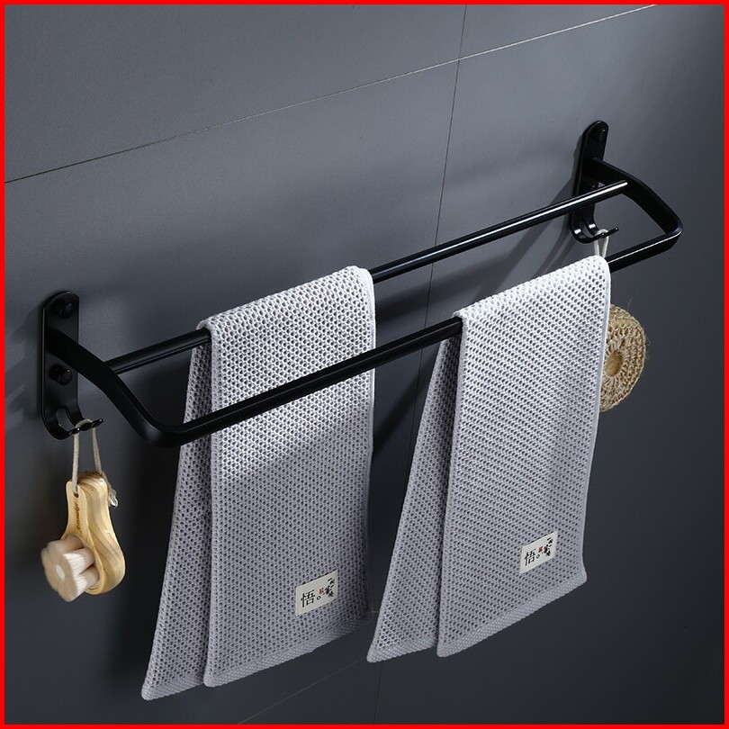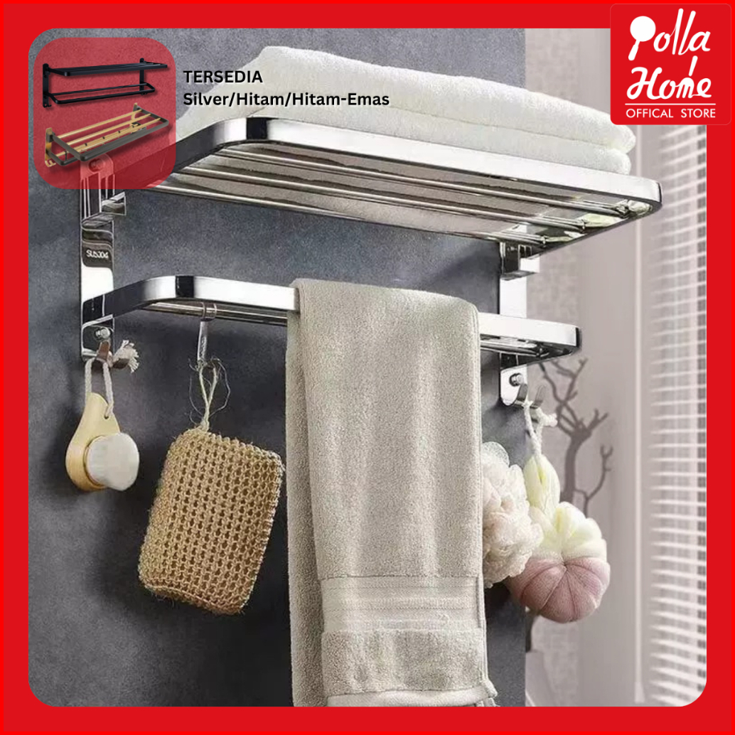 Ollahom Rak Gantungan Handuk Kamar Mandi Stainless Steel Dinding Tempel 1 Susun Warna Hitam