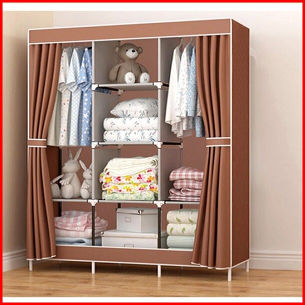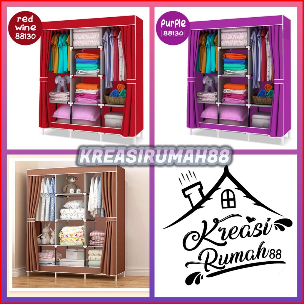 Lemari Pakaian Kain Portable Jumbo 88130 Lemari 3 Sekat Lemari Baju Murah