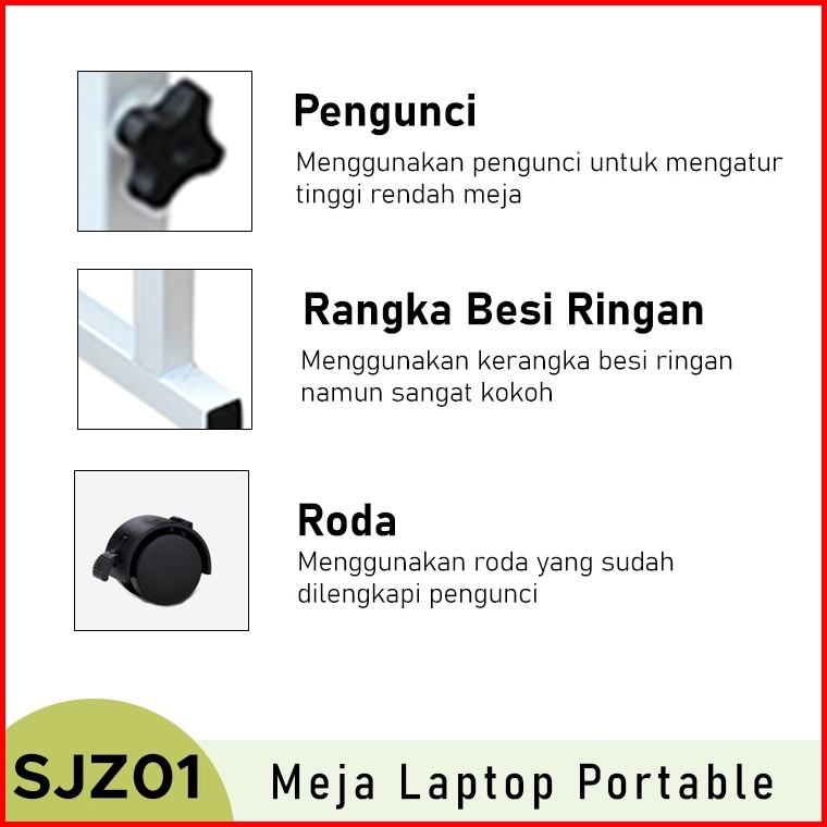 Meja Laptop Meja Lipat Meja Multifungsi Kaki Meja Belajar Dapat Di Atur 70-90cm Sjz01 - Rd