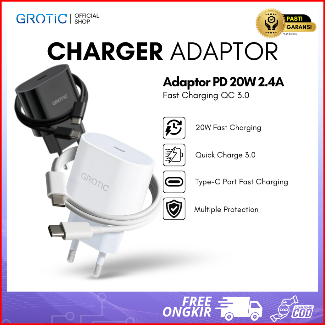 Grotic Charger Adaptor Pd 20w 2.4a Kepala Charger Fast Charging Qc3.0 Type-c Lightning