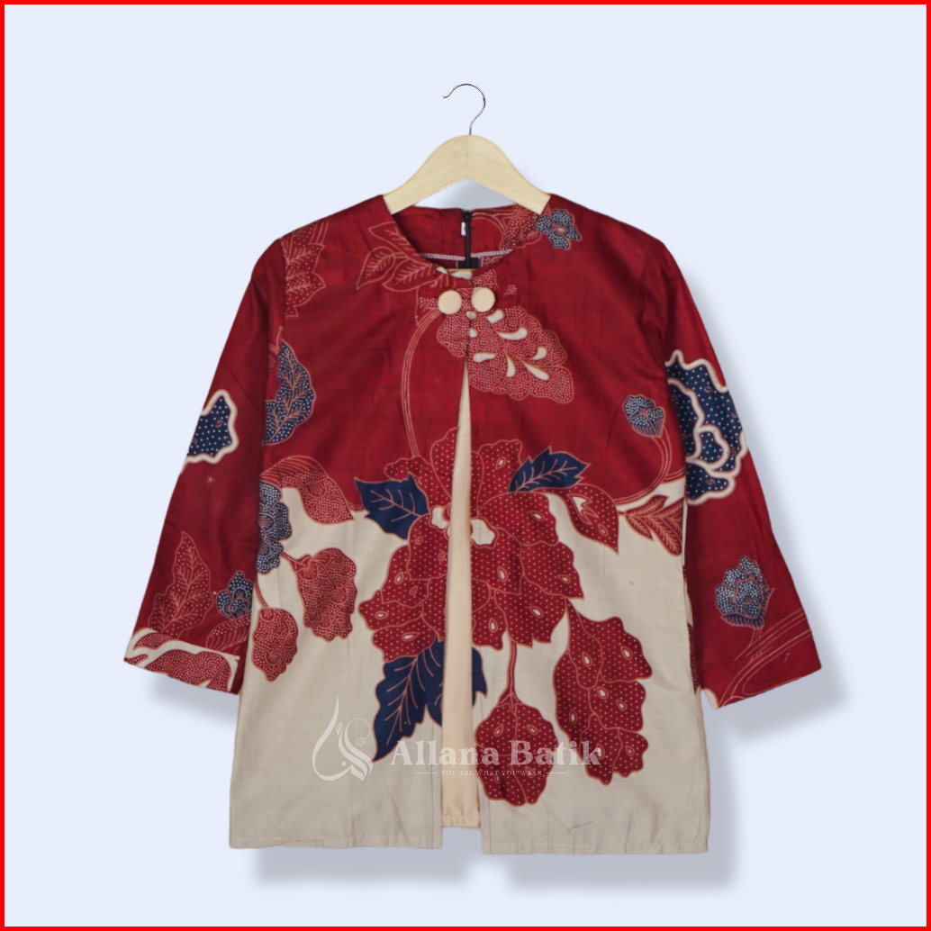 Batik Wanita 2in1 Blouse Dan Outer Batik Wanita Modern Kancing Depan Blouse Mawar By Batik Allana