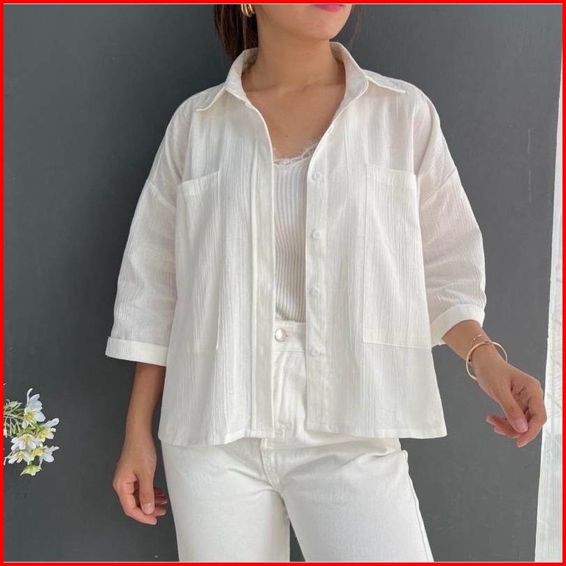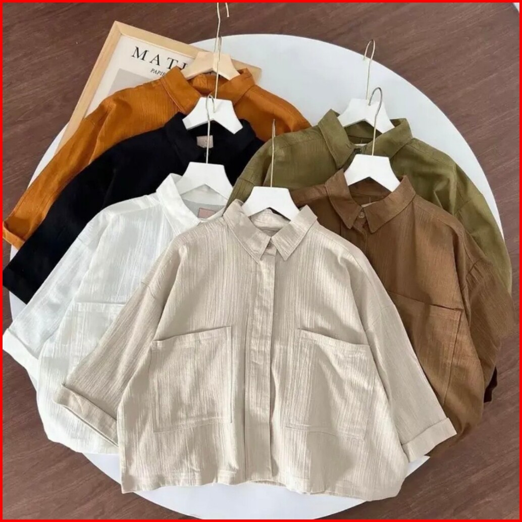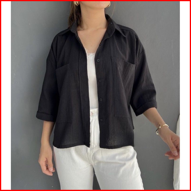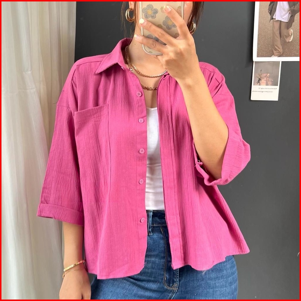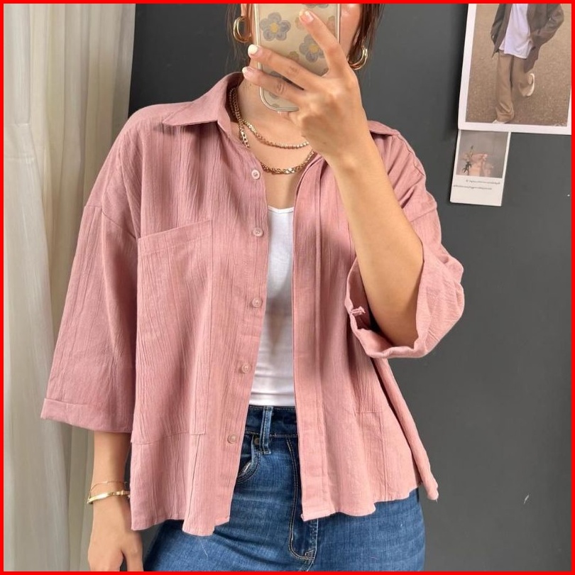 Kemeja Wanita Cozie Linen Crinkle Oversize 2 Pocket
