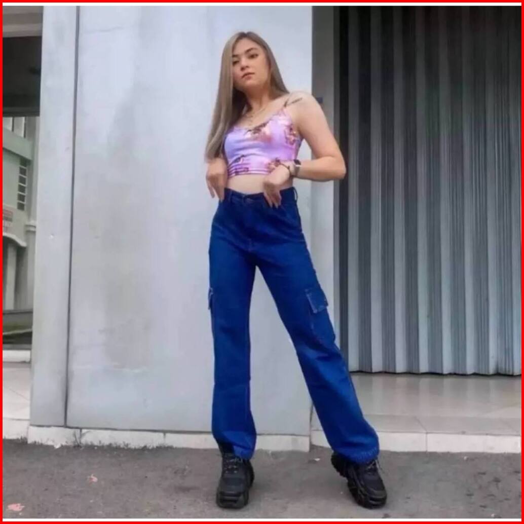 Celana Highwaist Cargo Jeans Loose Wanita Kulot Cargo Highwaist