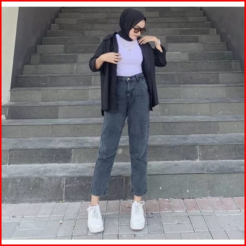 Celana Boyfriend Jeans Wanita Highwaist Jins Boyfriend