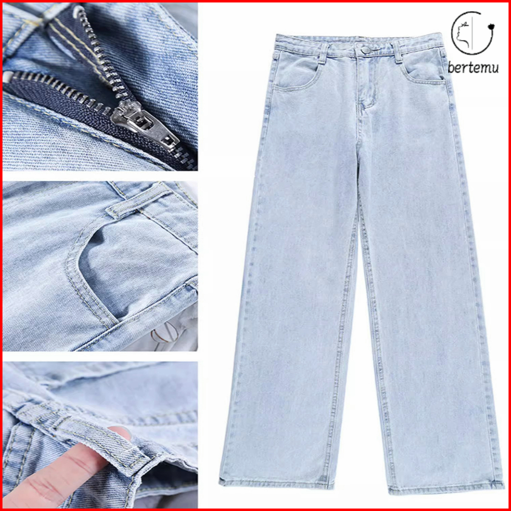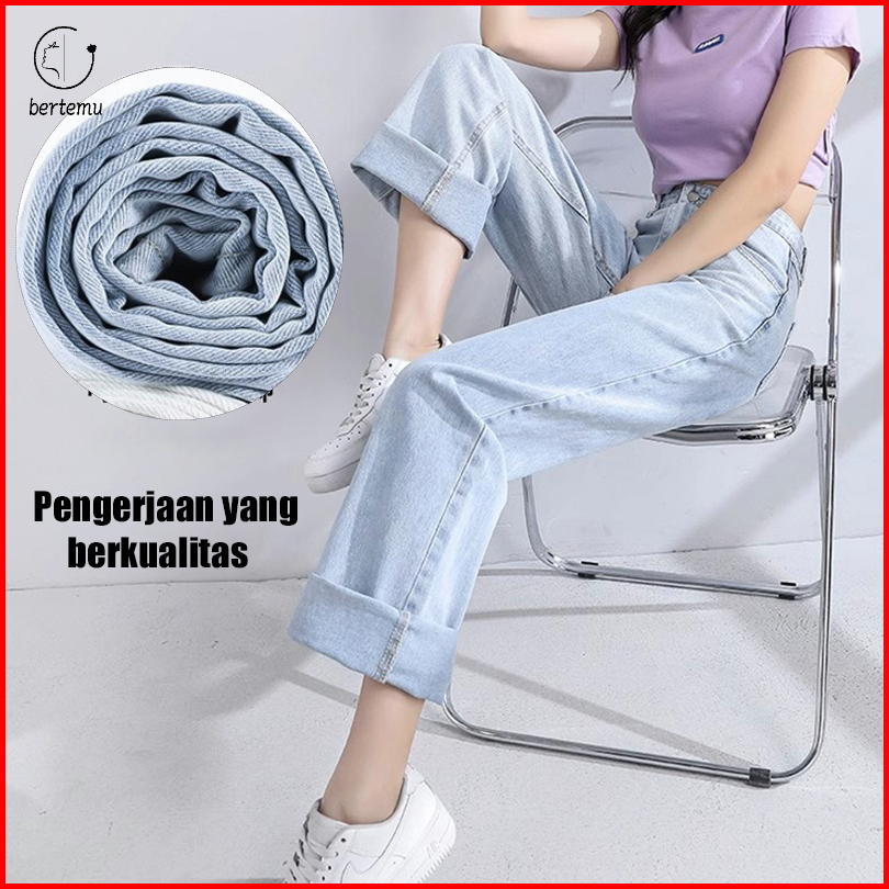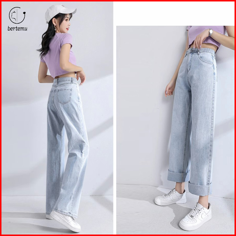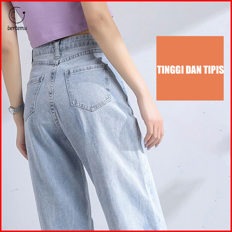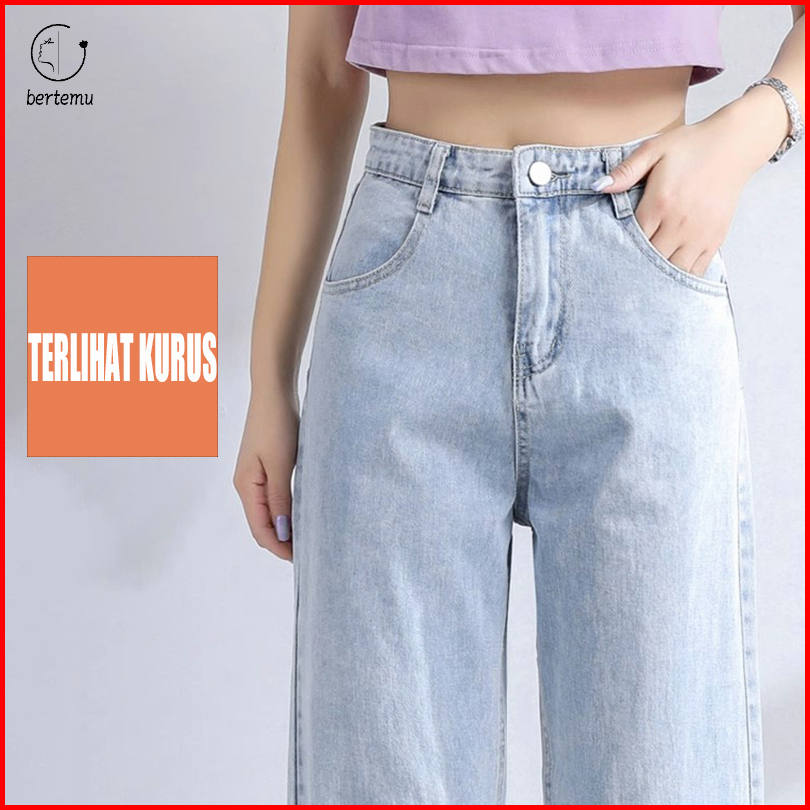 Celana Panjang Wanita Kekinian Jeans High Waist Jiniso Korean Style Highwaist Kulot Fashion Wanita Import Loose Pants St