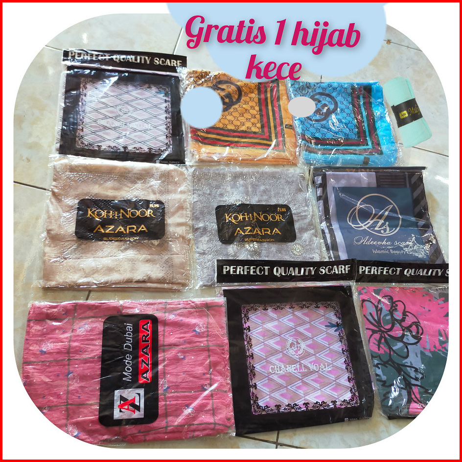 Isi 10 Gatis 1 Hijab Azara Pouch Metal Logo Paket Usaha Segiempat Bisa Random Seragam Laser Cut Motif Oleh Oleh Umroh Ha