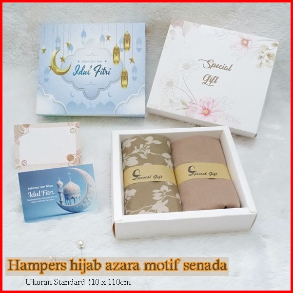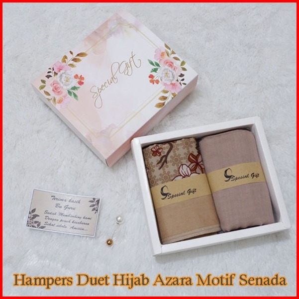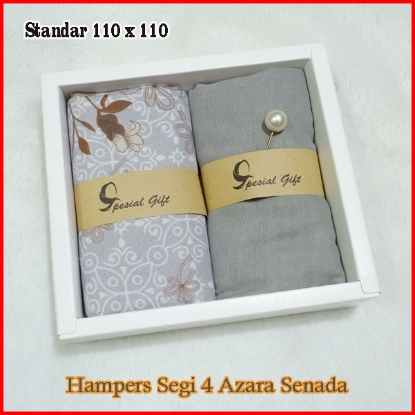 Hampers Dua Hijab Segiempat Motif Azara Dan Polos Katun Senada Kado Ultah Dan Lainya