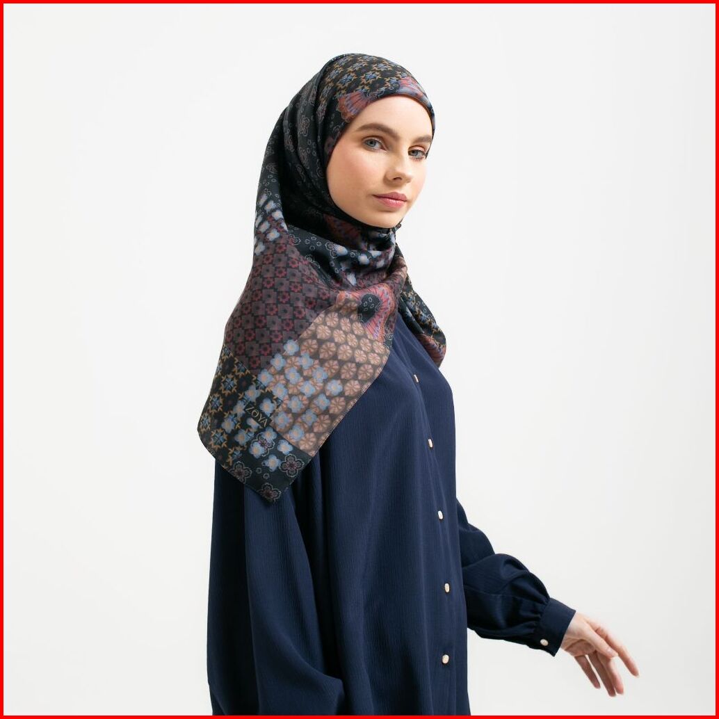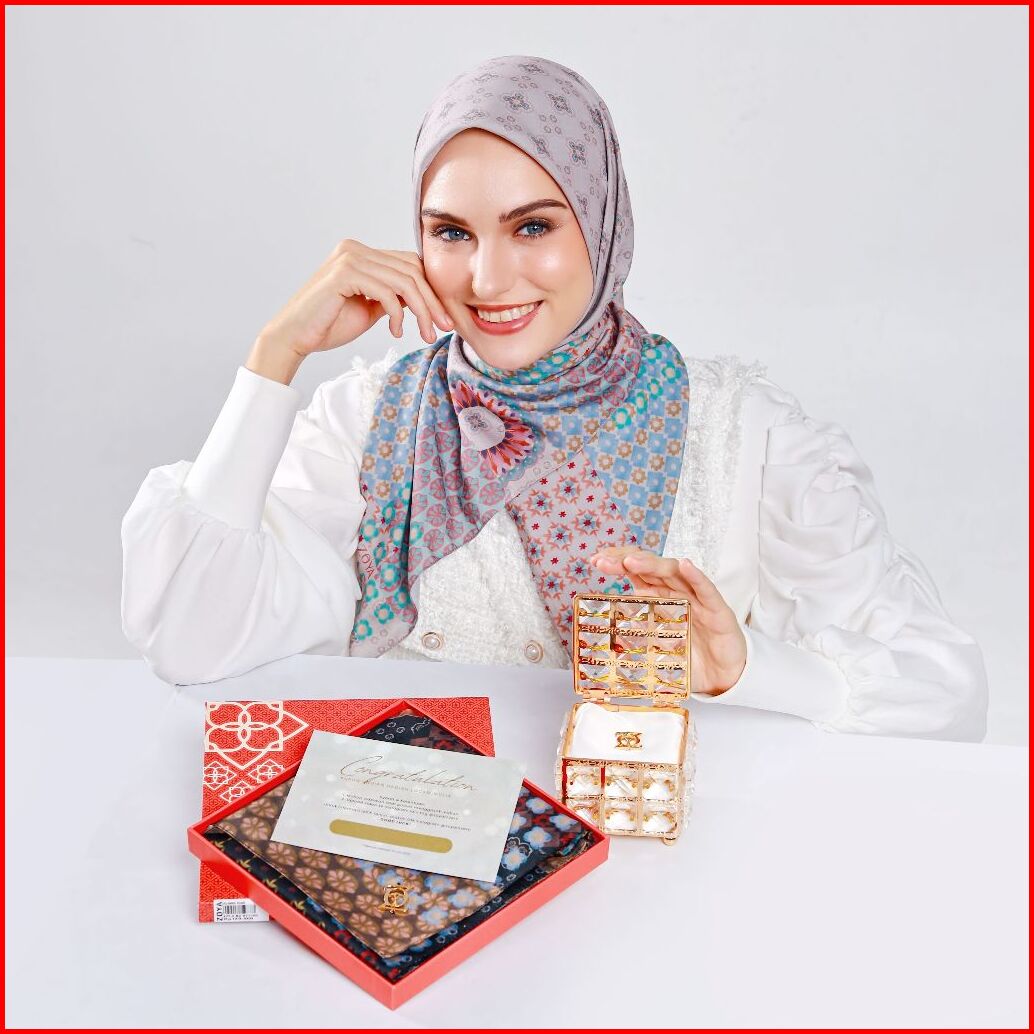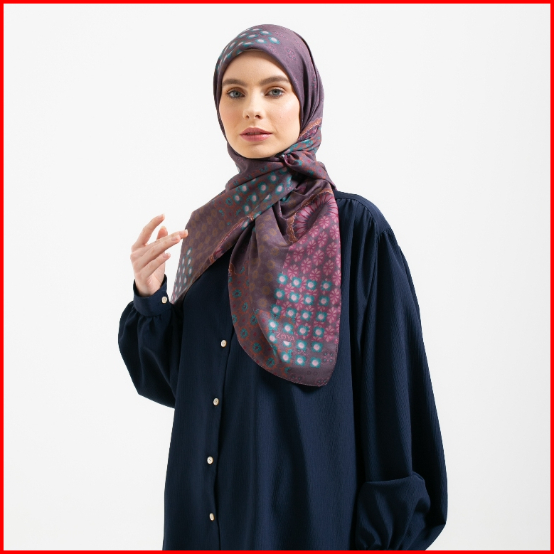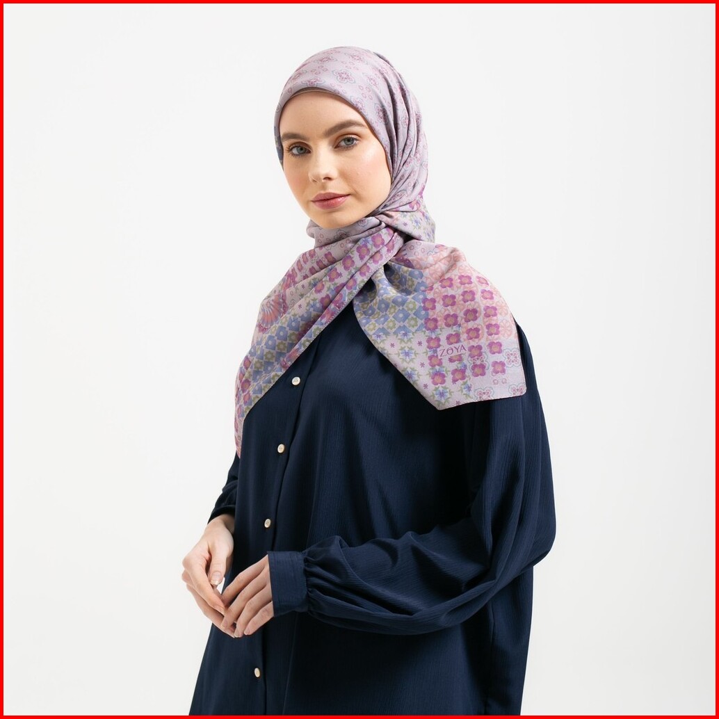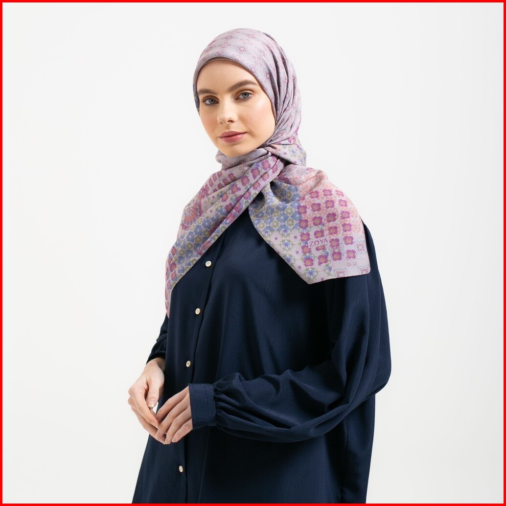 Zoya Delmara Scarf - Kerudung Hijab Segiempat Motif With Box - Bahan Voal - Ukuran 110x110
