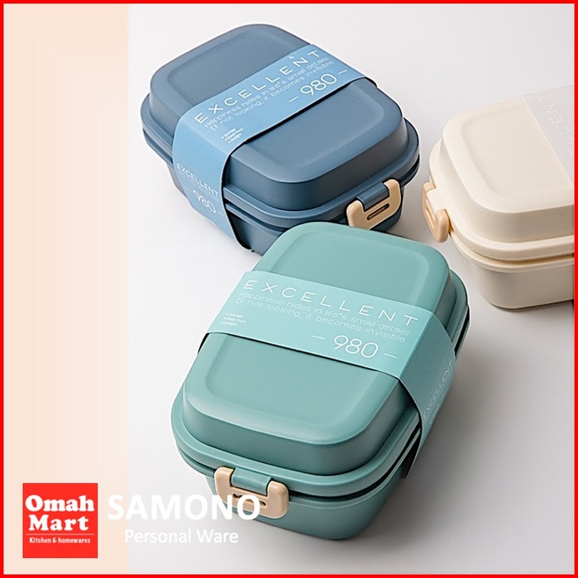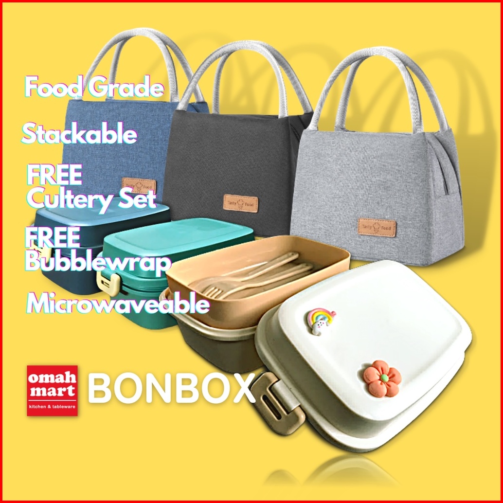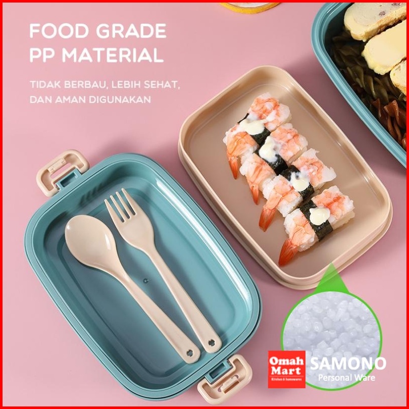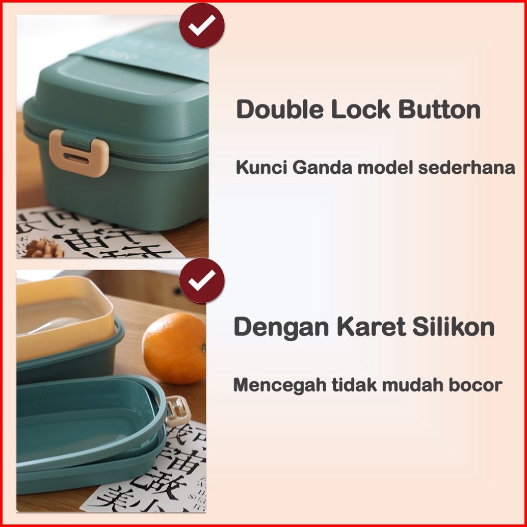 Lunch Box Bento Dewasa Susun 2 Anti Tumpah Set Sendok Garpu Dan Tas Bekal Makanan