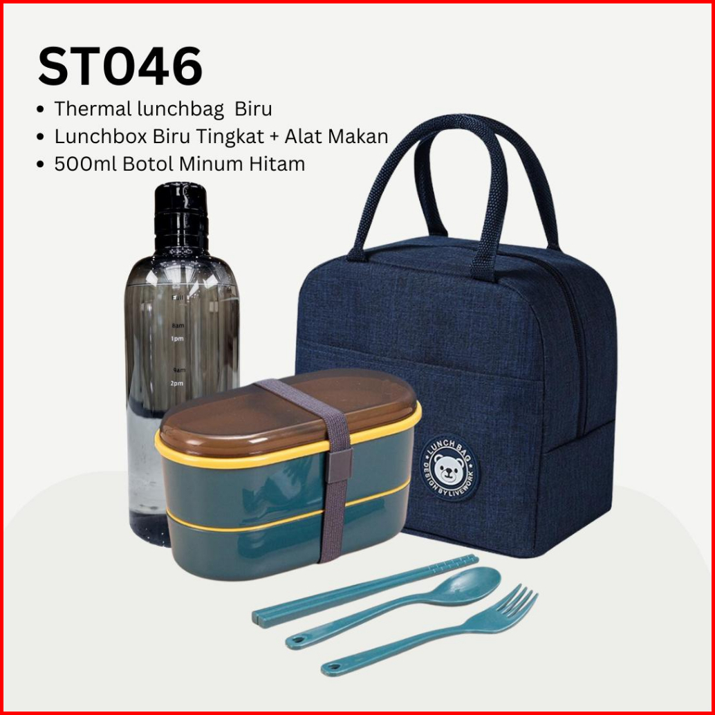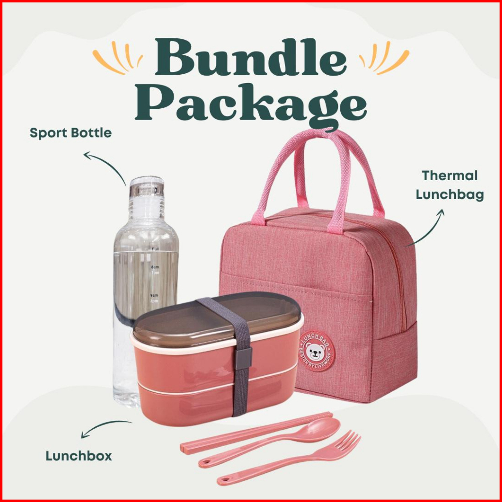 Set Kotak Makan Rantang Tingkat Layer Tas Lunchbag Thermal Tahan Panas Lunchbox Botol Monum Kitchenware
