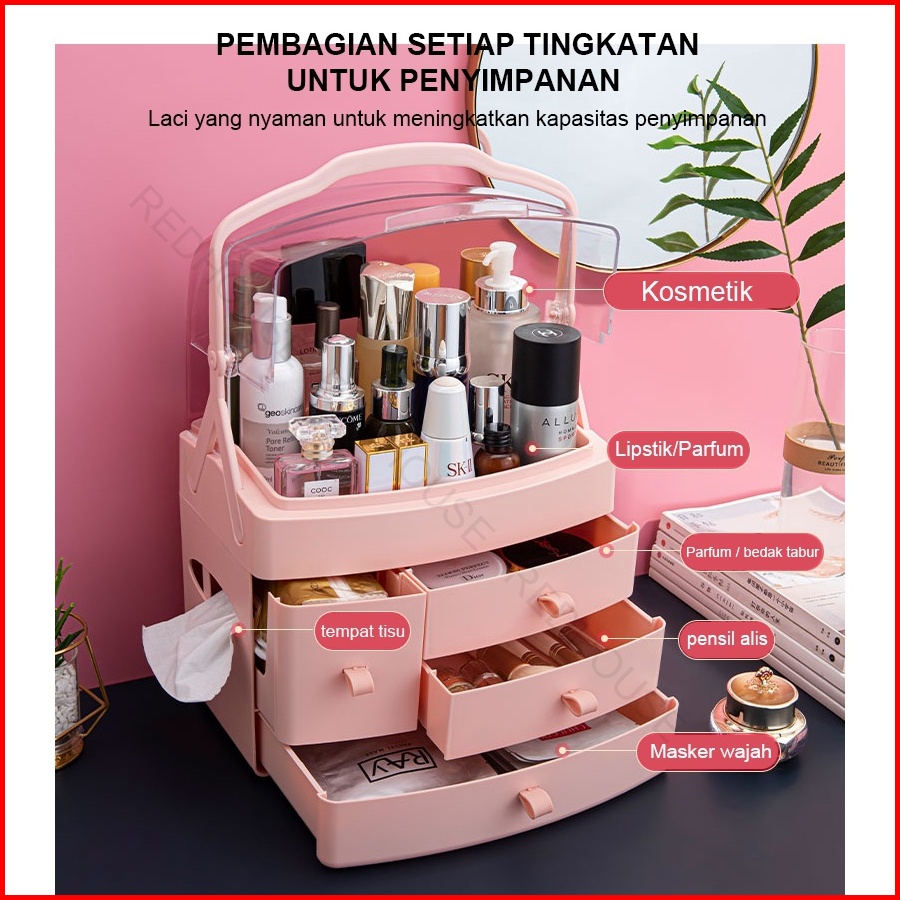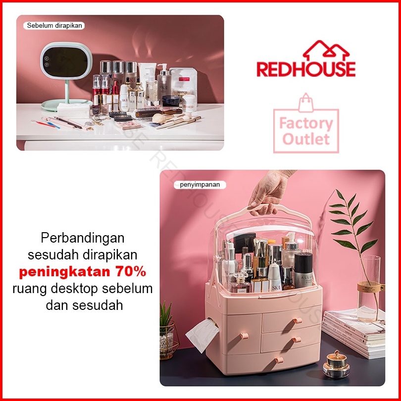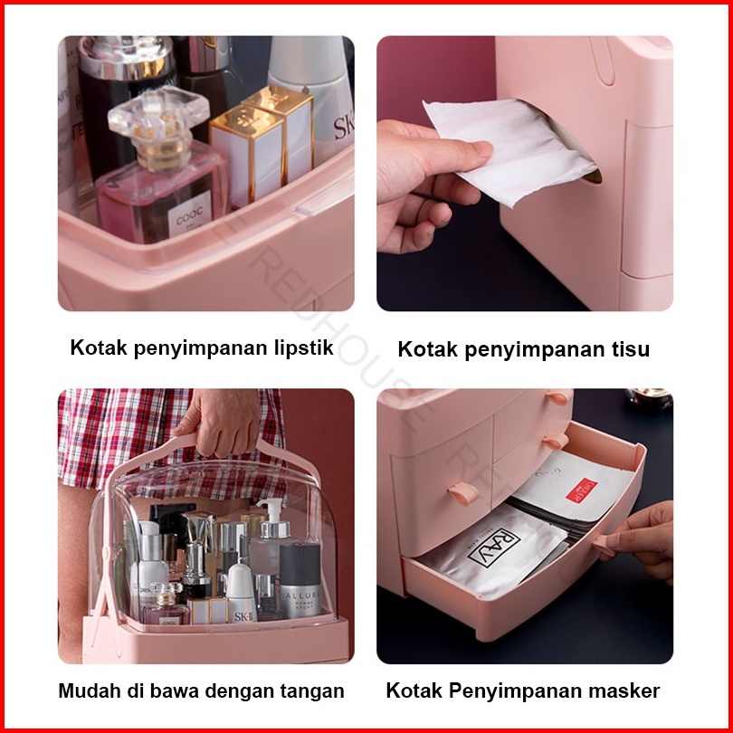 Red House Rak Kosmetik Beauty Case Tempat Penyimpanan Make Up Storage Box Organizer Kosmetik