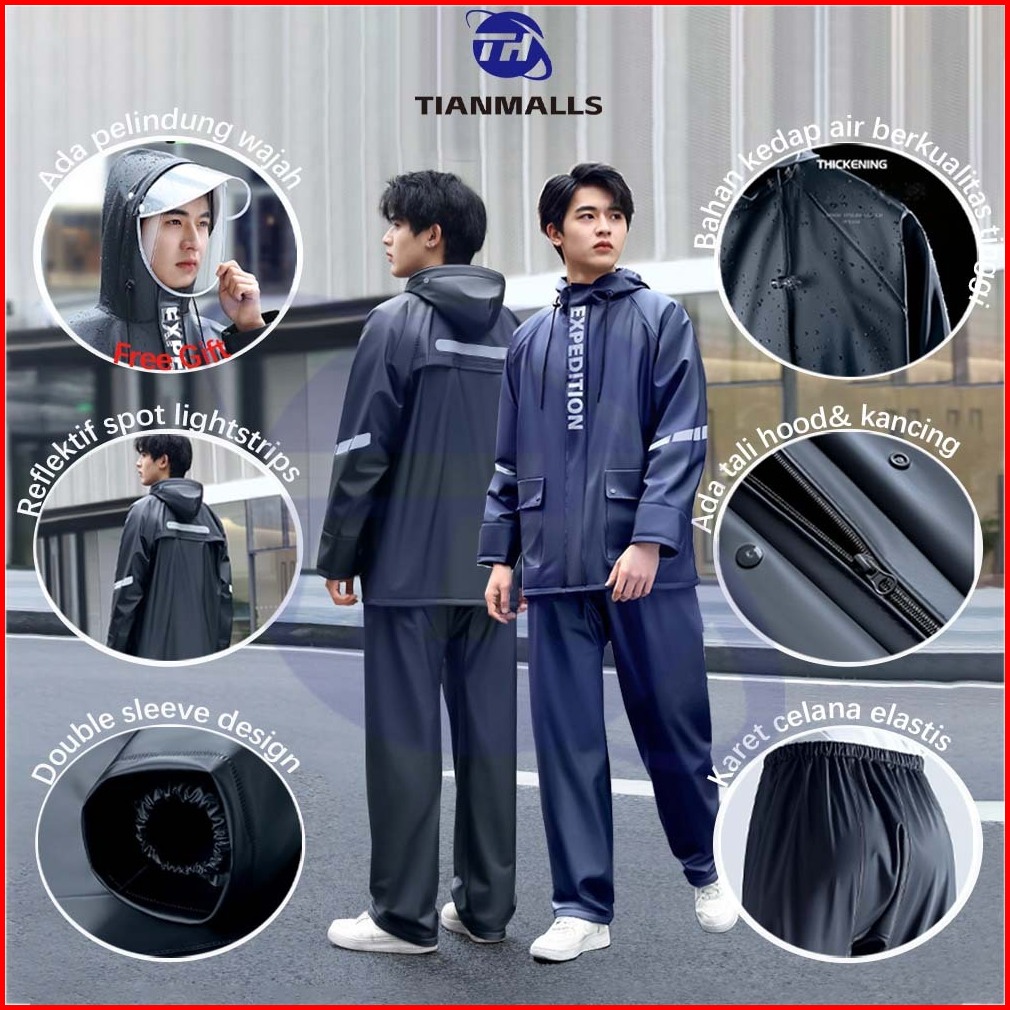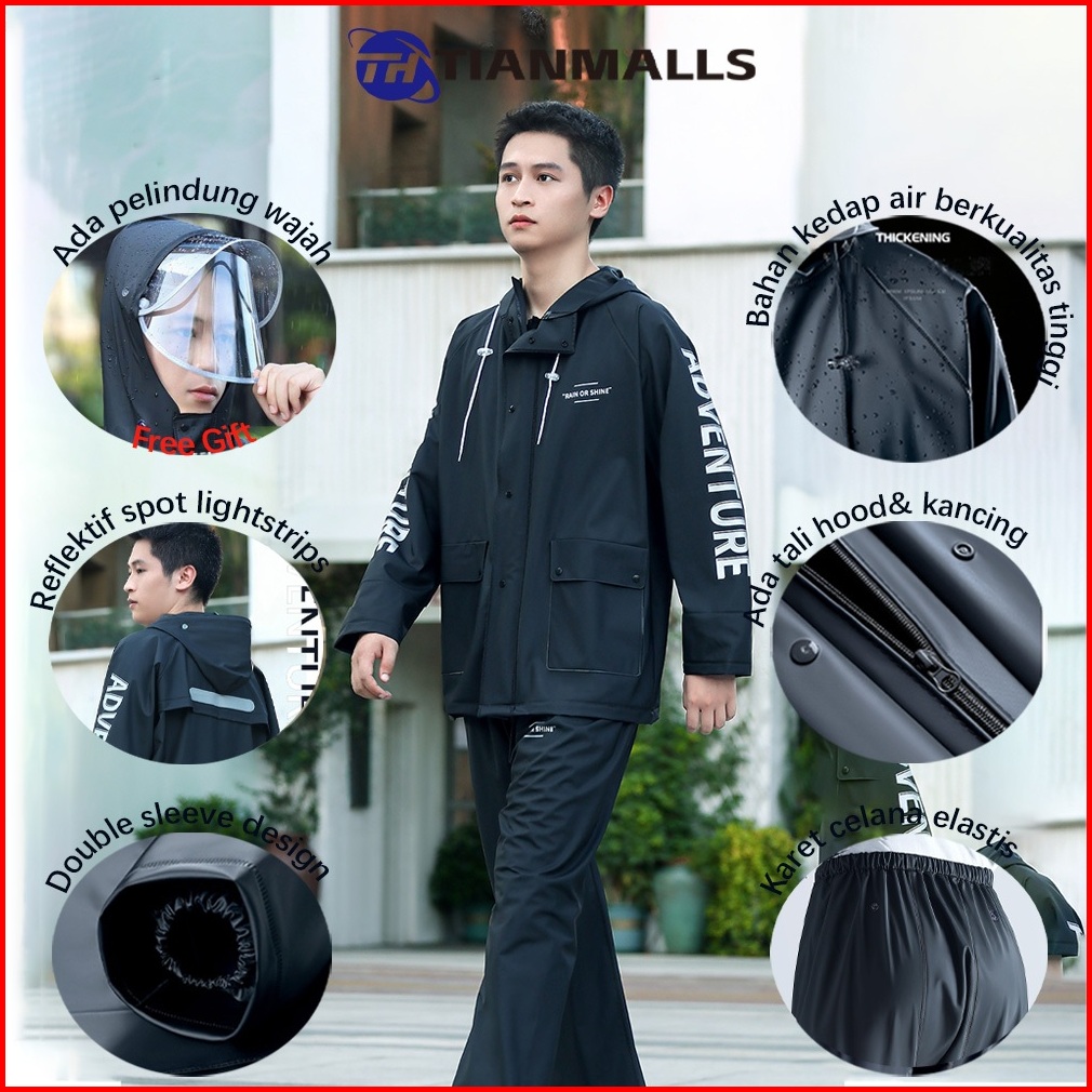 Jas Hujan Motor Pria Dan Wanita Tebal Pvc Dan Nilon Anti Angin Oxford Cloth Raincoat Mantel Set M L Yy