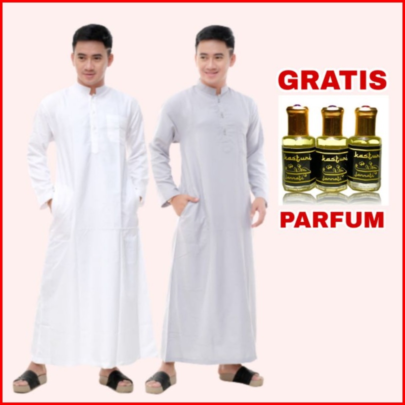 Jubah Pria Putih Polos Gamis Pria Dewasa Jubah Saudi Lengan Panjang