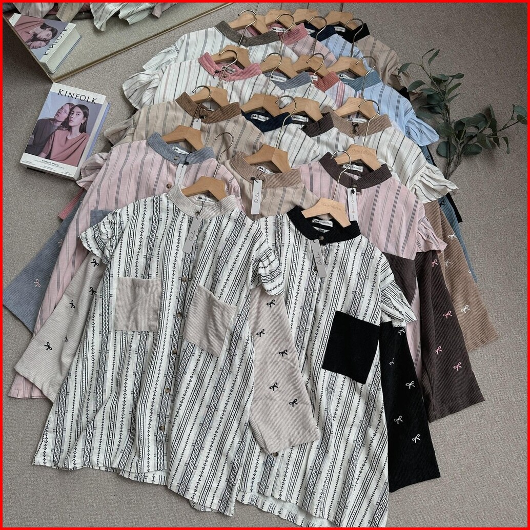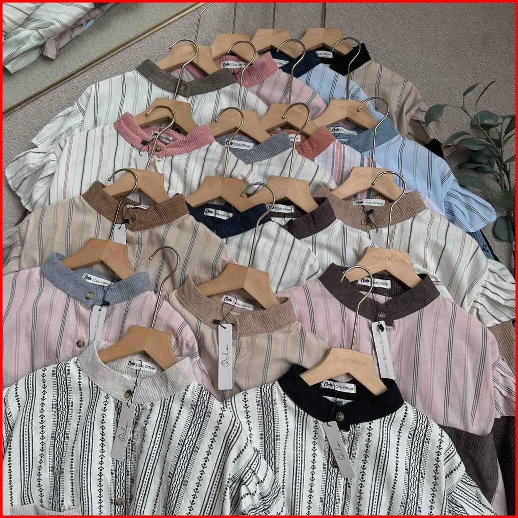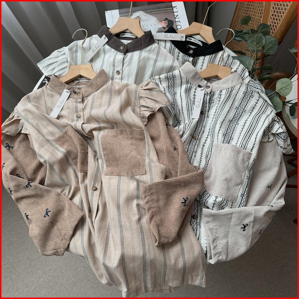 Oclo Hyosi Shirt Basic Atasan Wanita Kemeja Katun Linen Corduroy Lengan Panjang Ocl02380