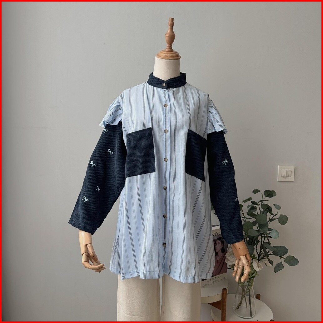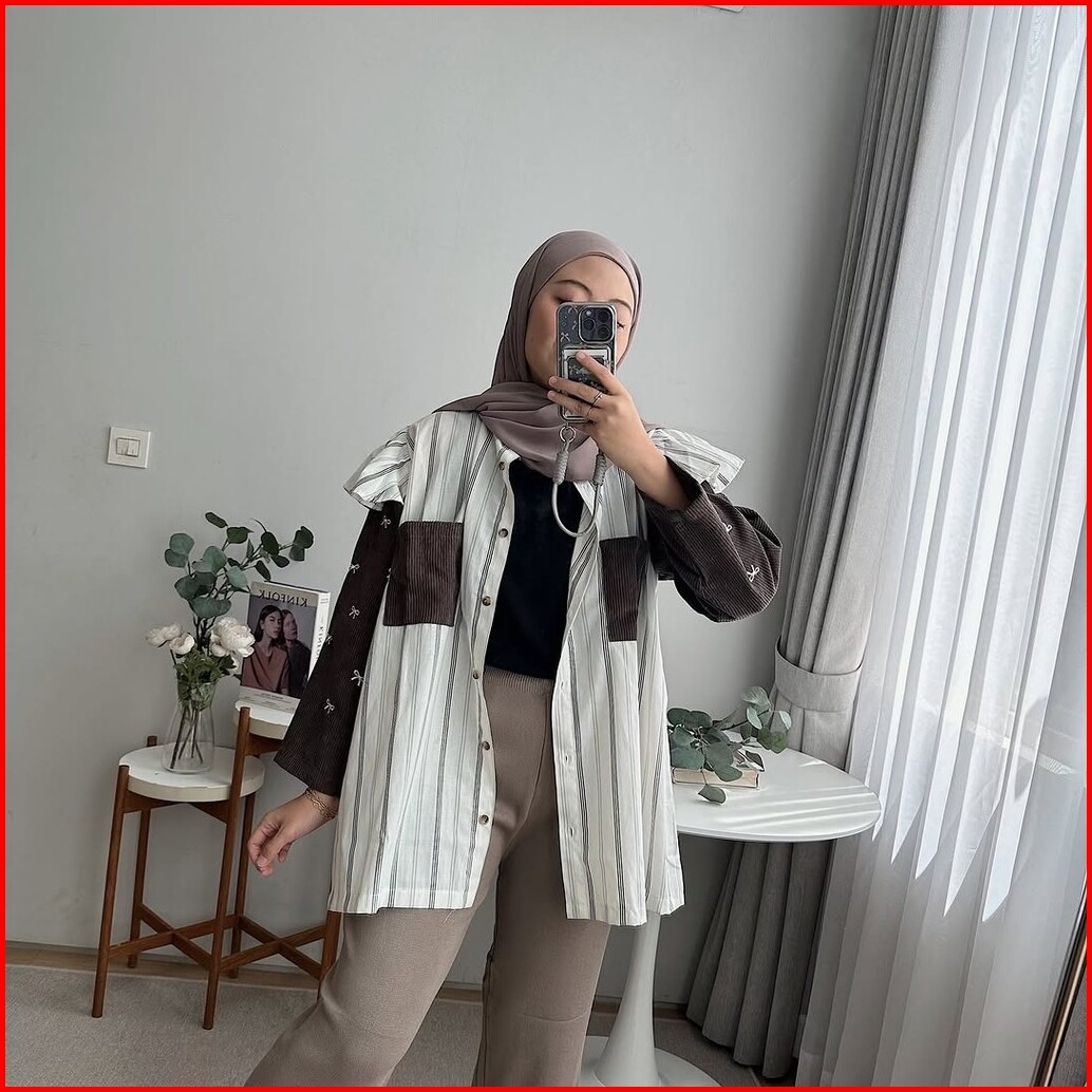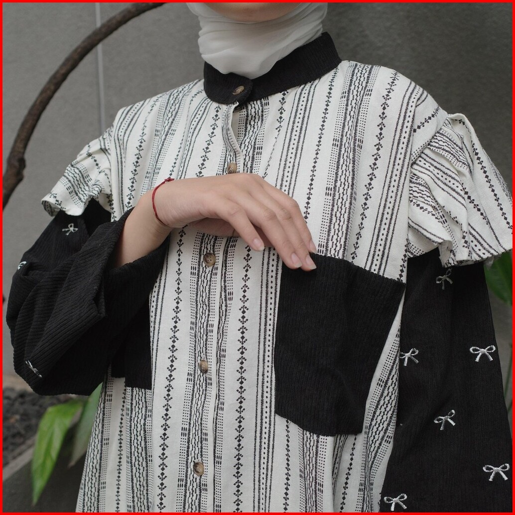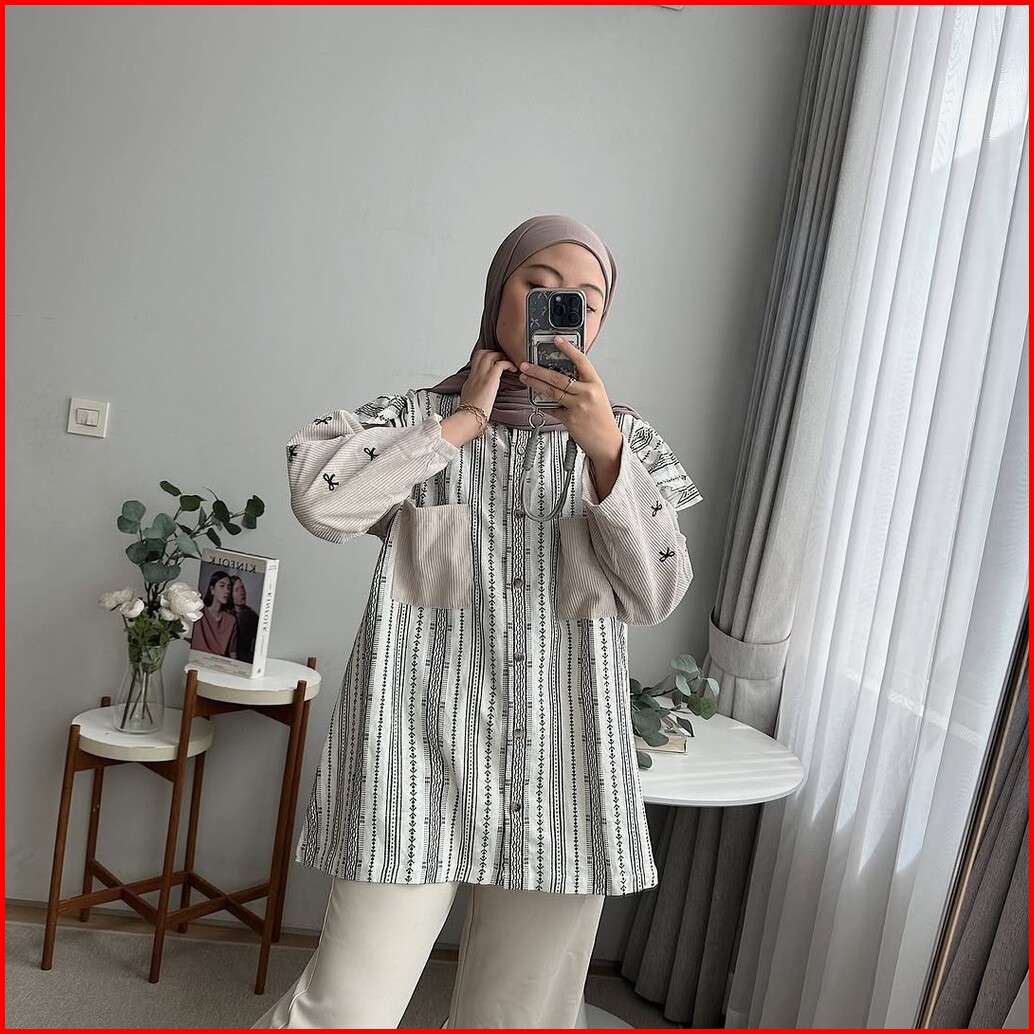 Oclo Hyosi Shirt Basic Atasan Wanita Kemeja Katun Linen Corduroy Lengan Panjang Ocl02380