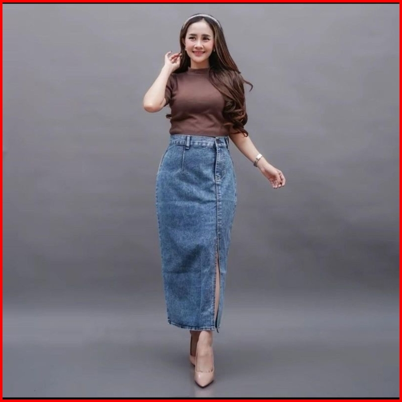 Rok Jeans Higwaist Belah Samping Korean Style Rok A-line