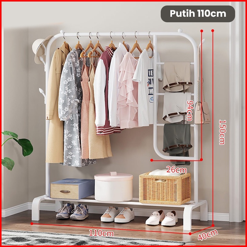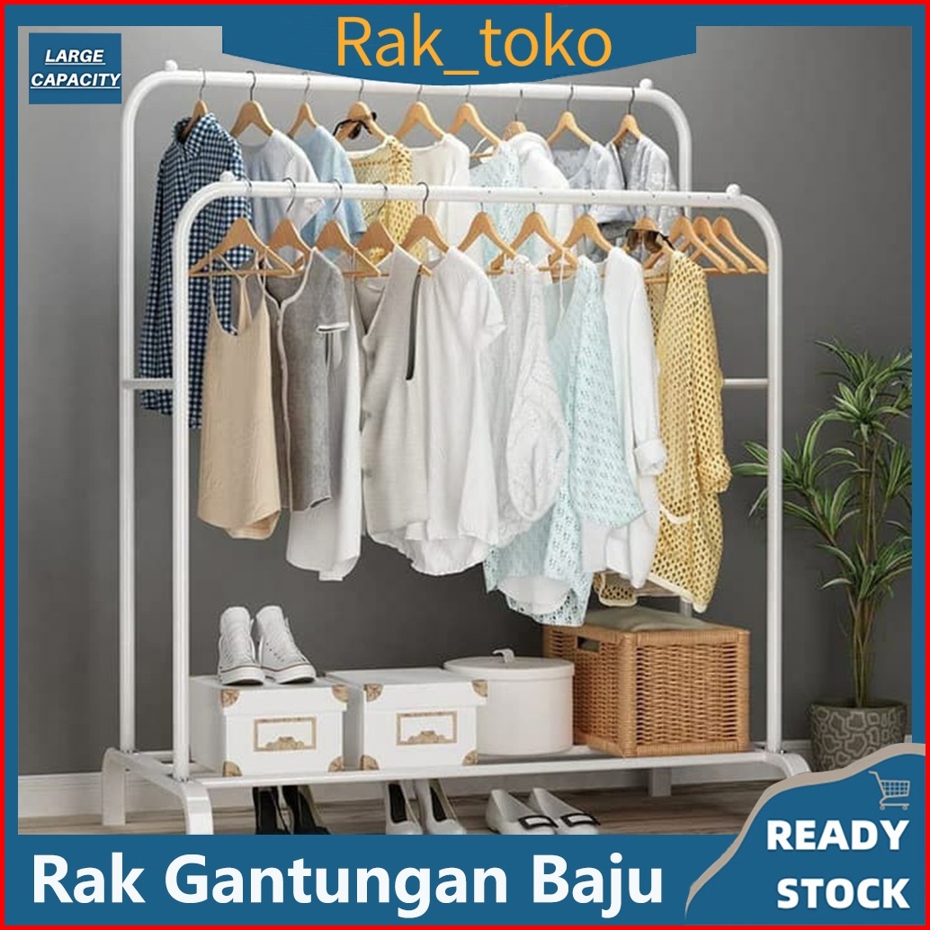 Rak Gantung Serbaguna Rak Baju Gantungan Baju Besi Stand Hanger Display Rak Sepatu Penyimpanan Jaket Topi Rak Jemuran Ba