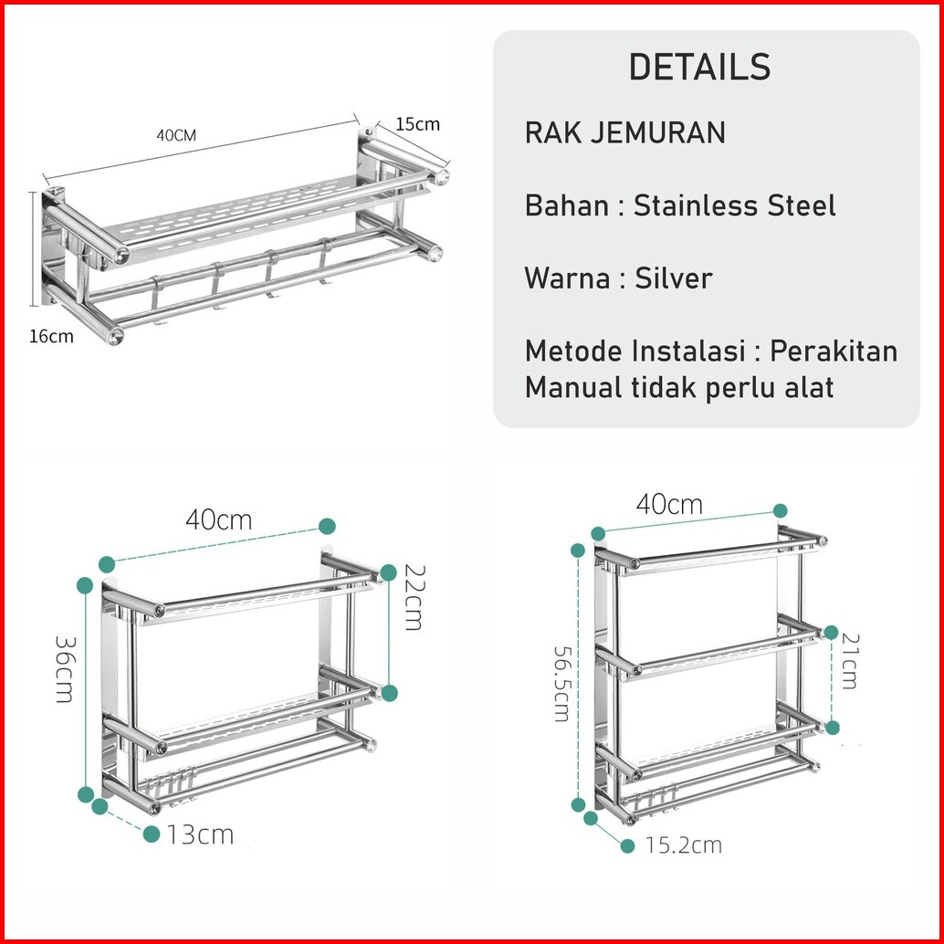 Olla Hom - Rak Kamar Mandi Dinding Rak Bumbu Dapur Stainls Steel