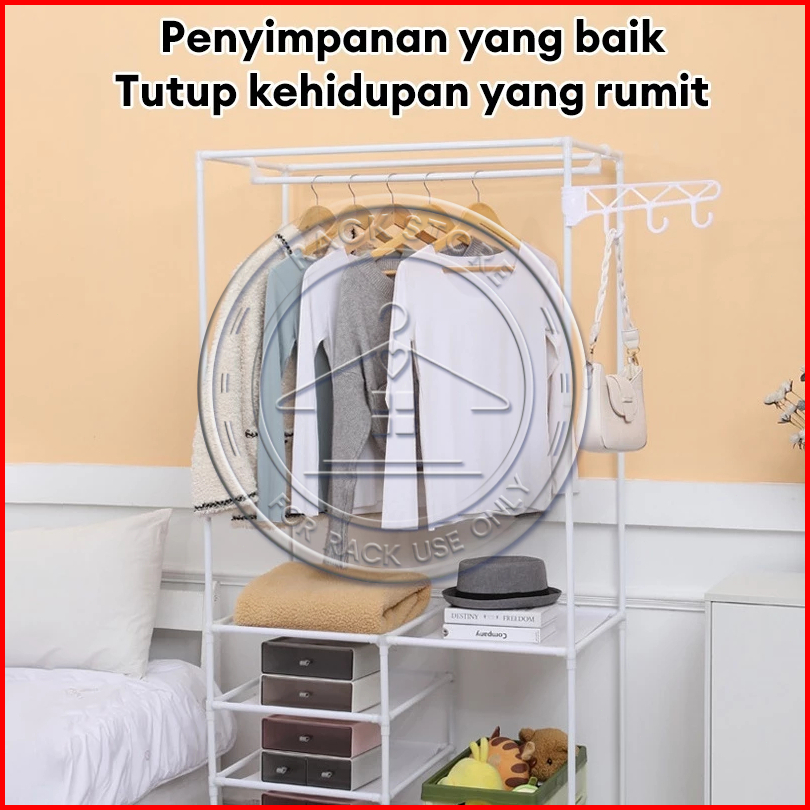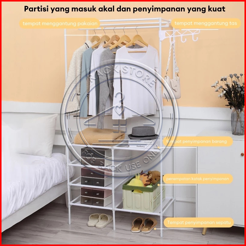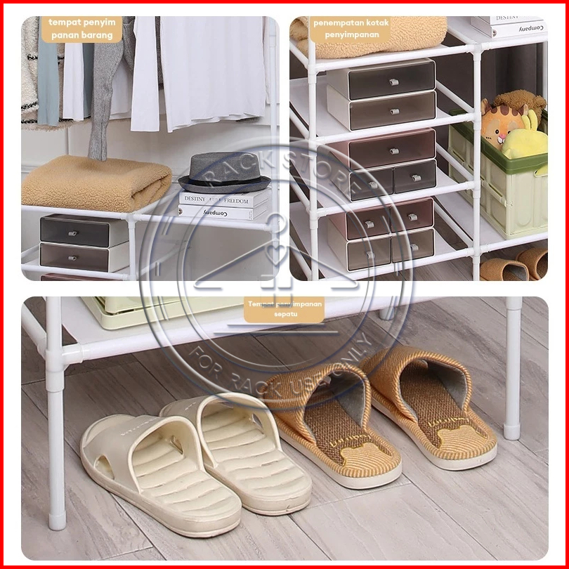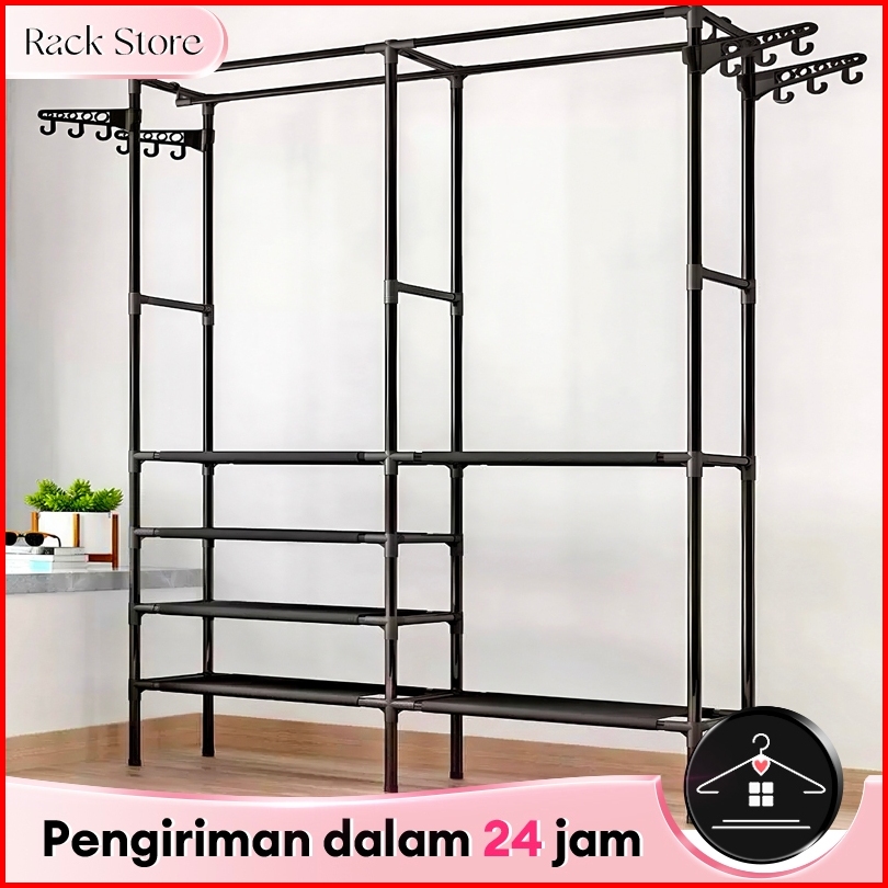 Rak Gantungan Baju Lemari Pakaian Portable Lemari Baju Jumbo Besi Stand Hanger Penyimpanan Serbaguna Lemari Tanpa Kain