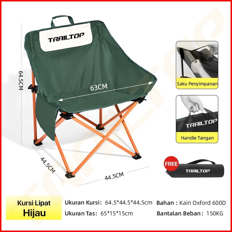 Trailtop Kursi Lipat Outdoor Beban 150kg Kursi Santai Camping Bangku Lipat Kursi Lipat Portable