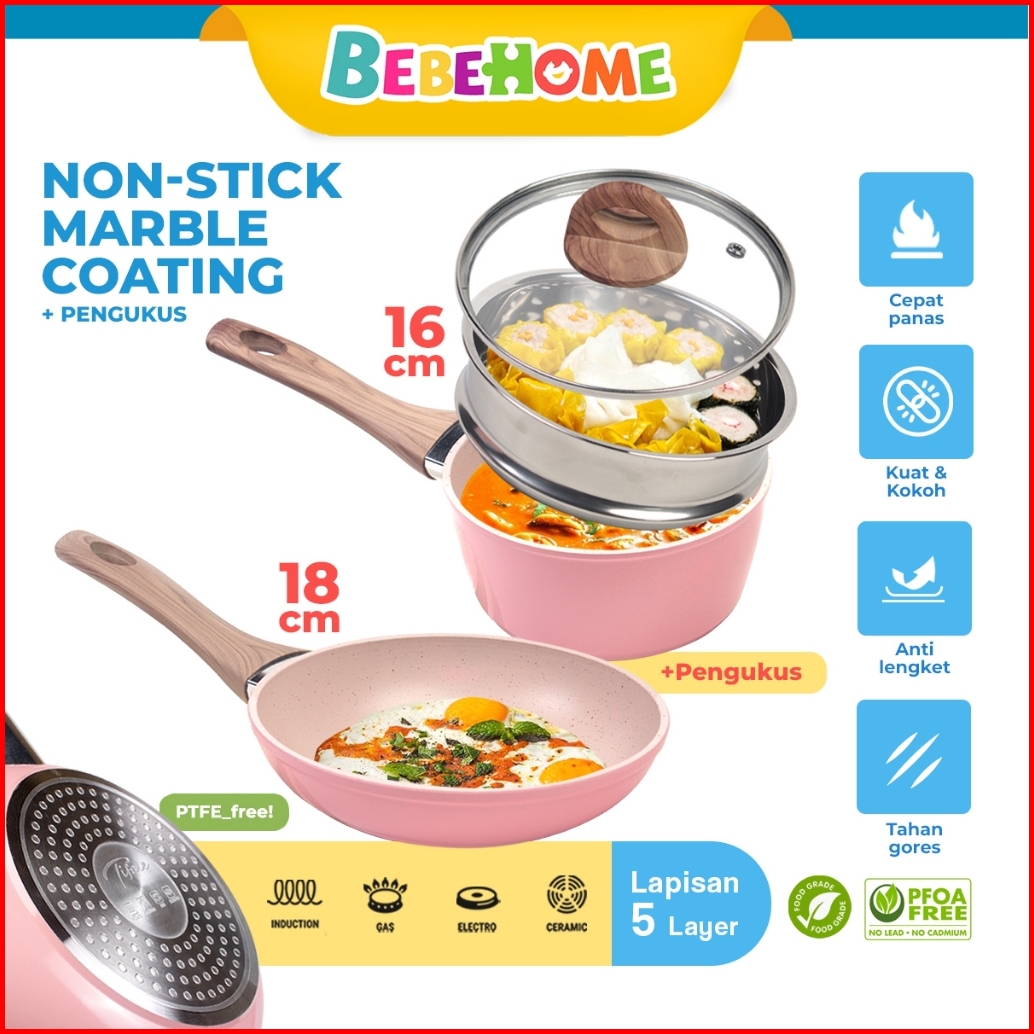 Tifale X Panci Set 2 Pcs Kukus Mpasi Peralatan Bayi Fry Pan Cookware Baby Wajan Granit Anti Lengket