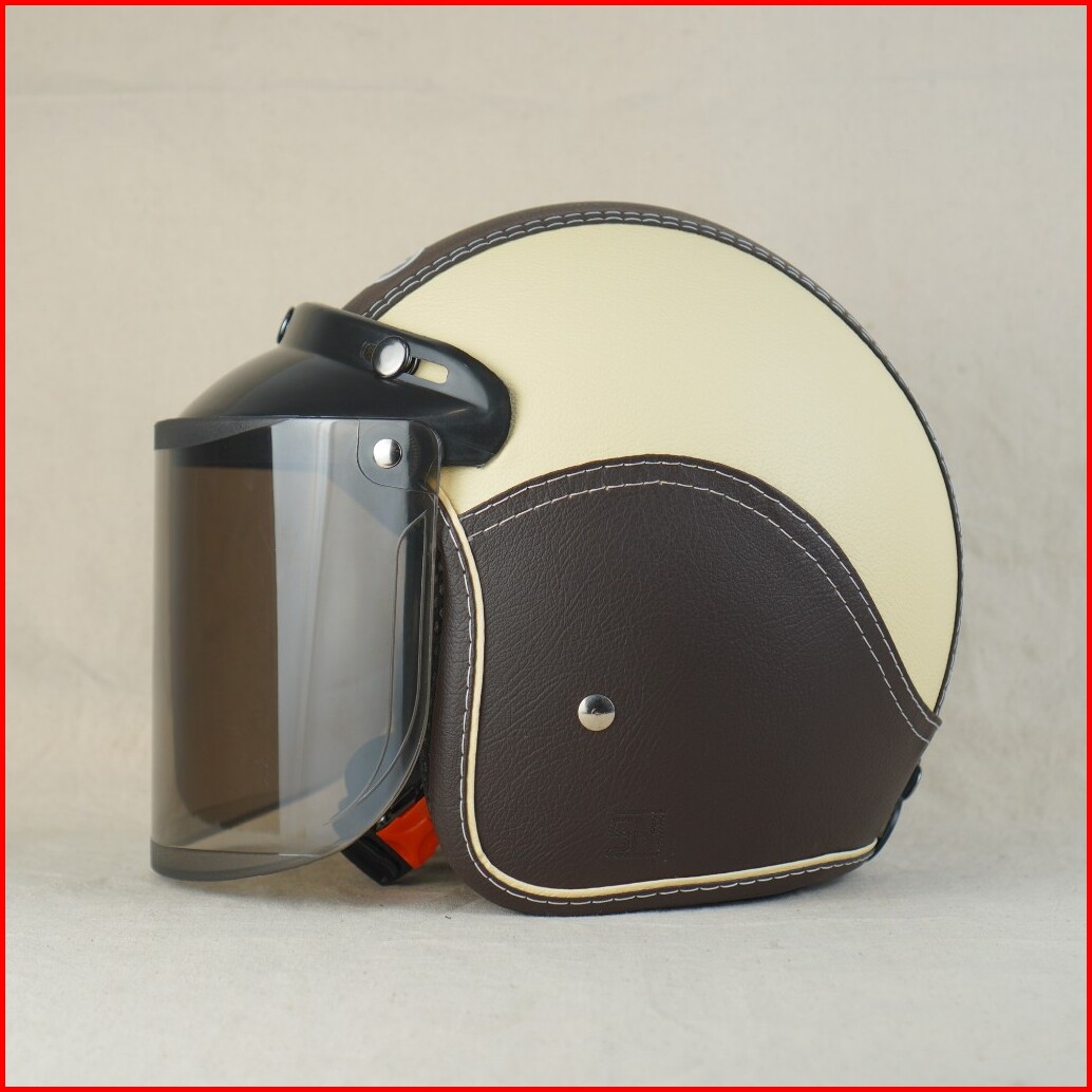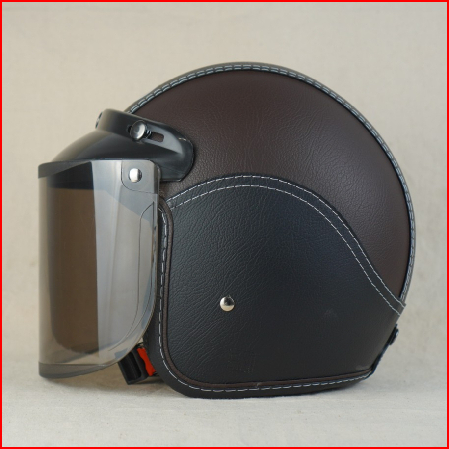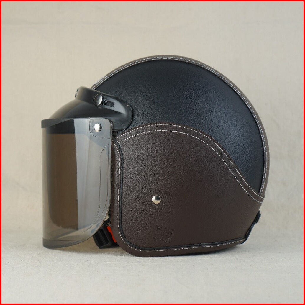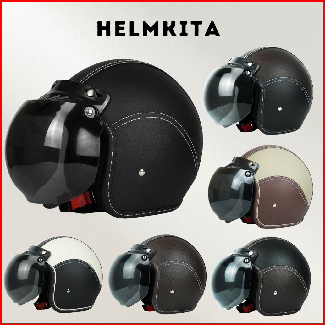 Helm Bogo Kulit Full Leher Retro Dewasa Sni Kaca Cembung Datar