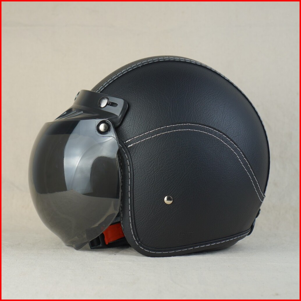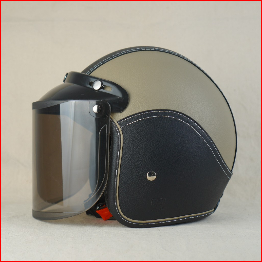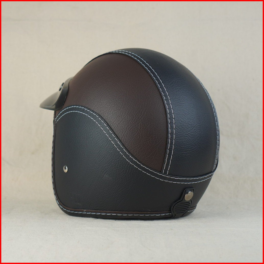 Helm Bogo Kulit Full Leher Retro Dewasa Sni Kaca Cembung Datar