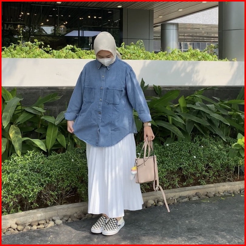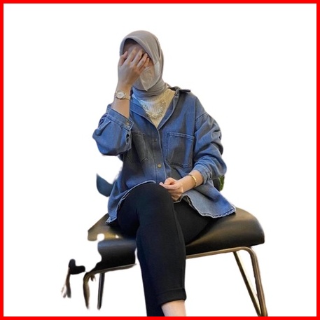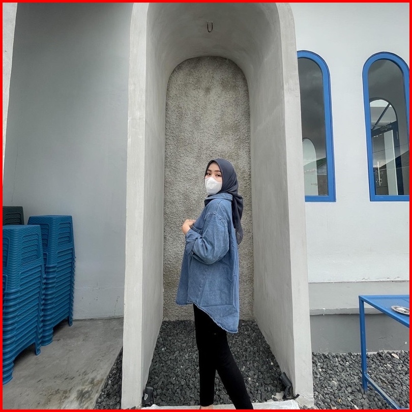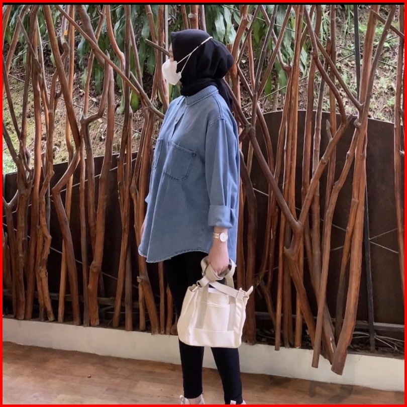 Over Size Women Shirt Kemeja Jeans Oversize Casual Estetic