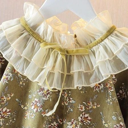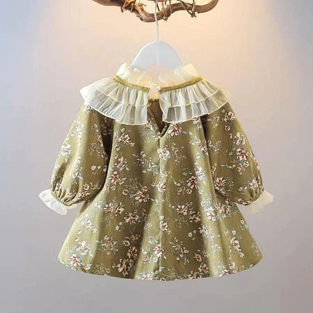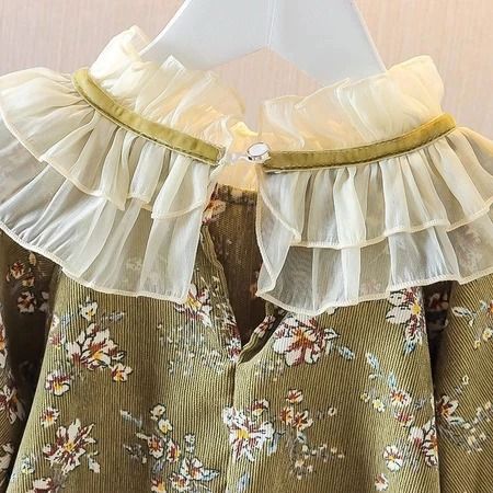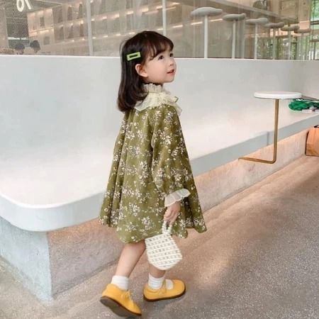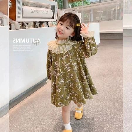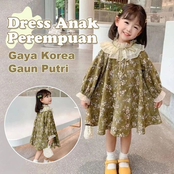 Dress Anak Perempuan Lengan Panjang Motif Bunga Gaun Anak Korea Putri Kerah Renda Baju Anak Perempuan Cantik Elegan