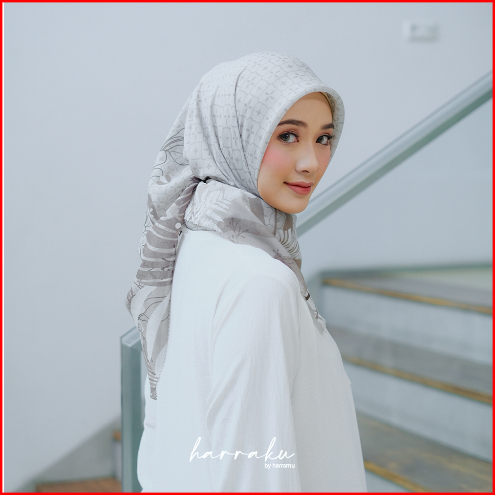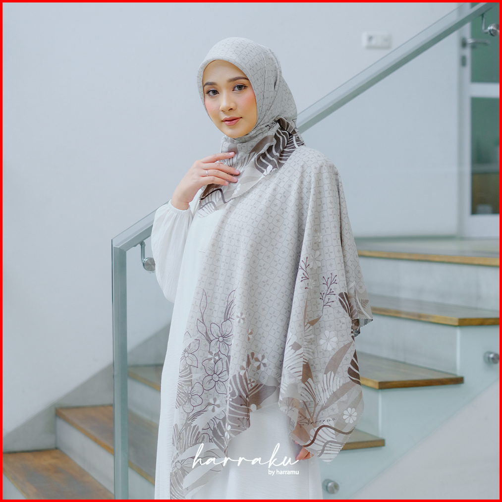 Harraku Hijab Voal Printing Segiempat Motif Nazua Coklat